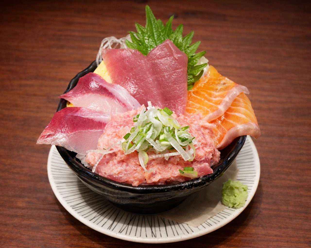 まぐろ・サーモン・白身魚・中落ちの4種を一度に楽しめる、満足感たっぷりの海鮮丼。