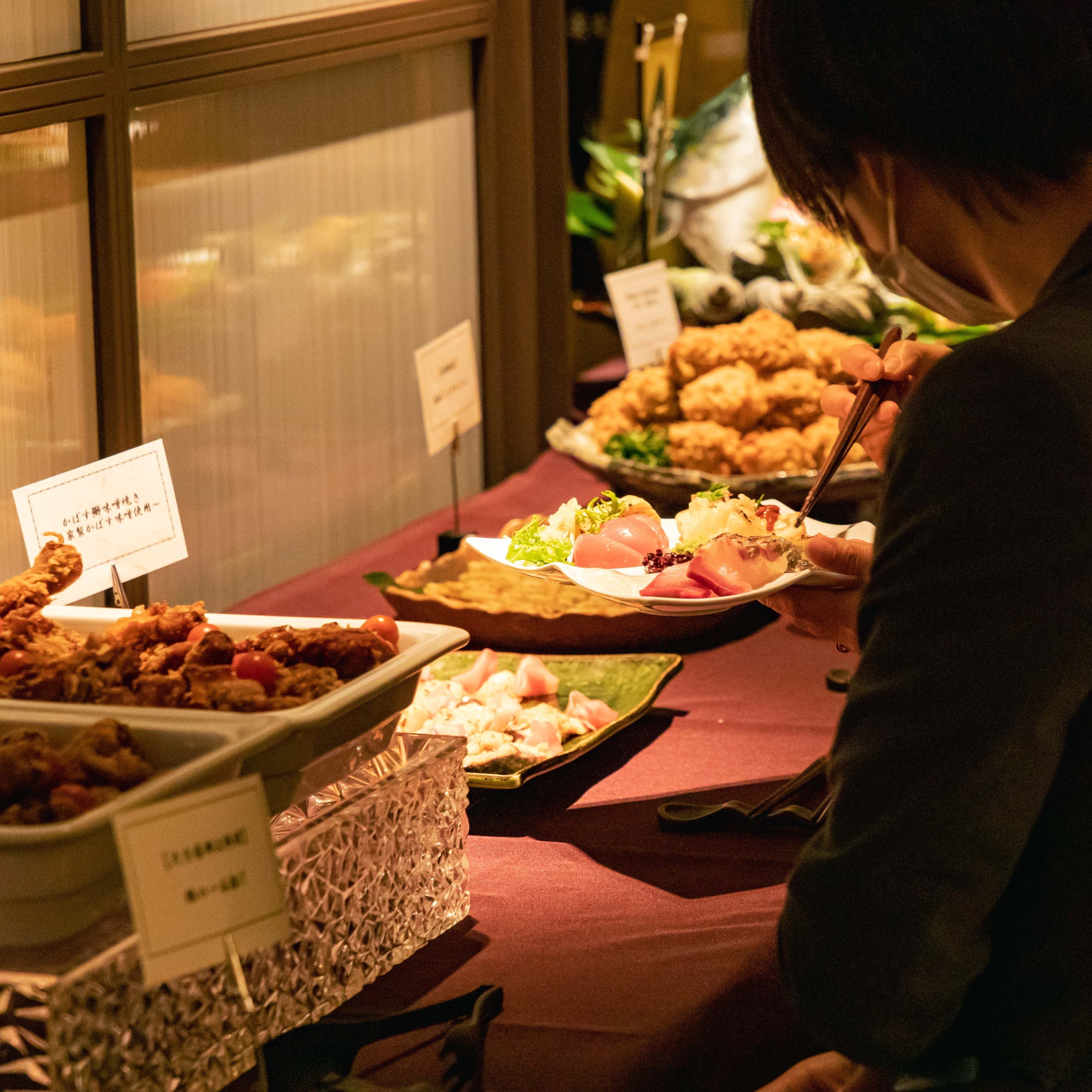 通常のメニューでは販売していない[共同食肉 鹿児島黒牛のローストビーフ]や[鹿児島市中央卸売市場 田中水産 鮮魚刺身盛り合わせ][ 鹿児島黒豚と筍の黒酢酢豚 ~坂元醸造「三年熟成黒酢使用」~]など、この日しか味わえない総菜の数々をビュッフェ形式で余すところなく愉しめるイベント。鹿児島県の食材を心ゆくまでご堪能いただけます。