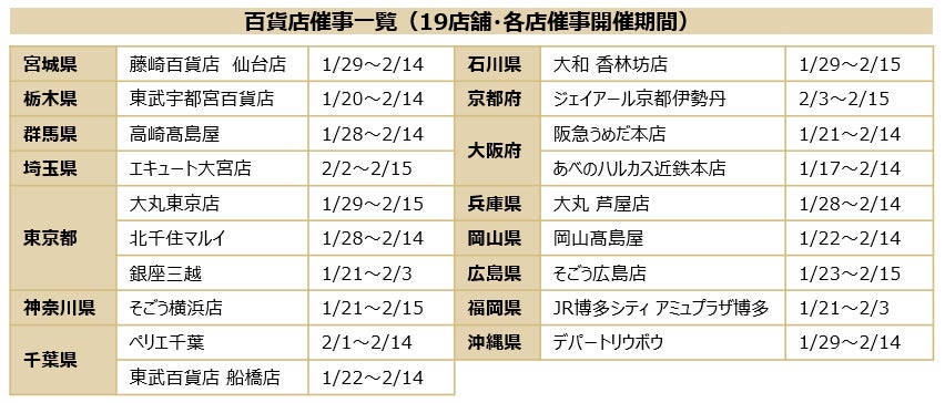 ※2:リュクスショコラソフトクリーム:東武宇都宮百貨店(栃木)、あべのハルカス近鉄本店(大阪)、デパートリウボウ(沖縄)、フレイズ エ ショコラ:東武宇都宮百貨店(栃木)、エキュート大宮(埼玉)、あべのハルカス近鉄本店(大阪)