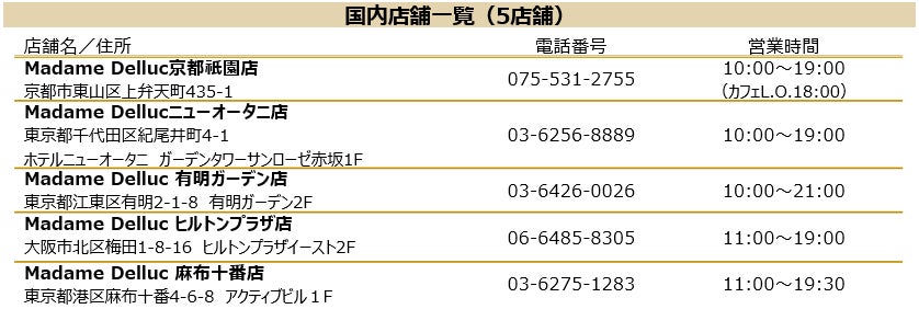 販売店舗:マダムドリュック直営店および全国19店舗(※)の百貨店催事