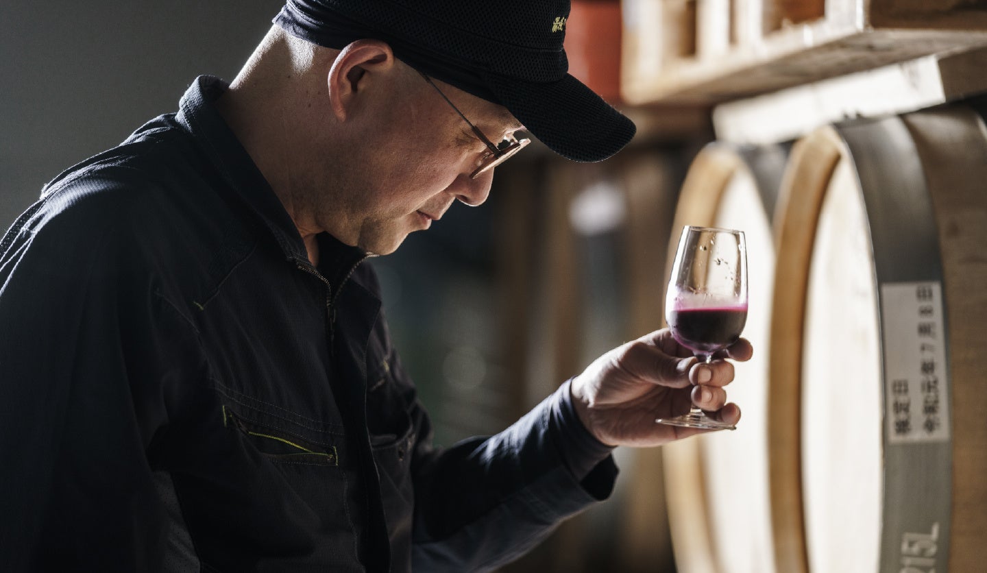 国産のメルローを100%使用した赤ワインを使用しました。カシスやプラム、ブラックベリーといったベリー系の豊かな果実味があふれる味わいは、チョコレートとの相性抜群です。さらにも国産のメルローは、エレガントで優しい果実味と高い酸味が特徴で、繊細な味わいがよりチョコレートの甘さをバランスよく引き立てます。ワイナリーならではの視点を活かした逸品に仕上がっています。