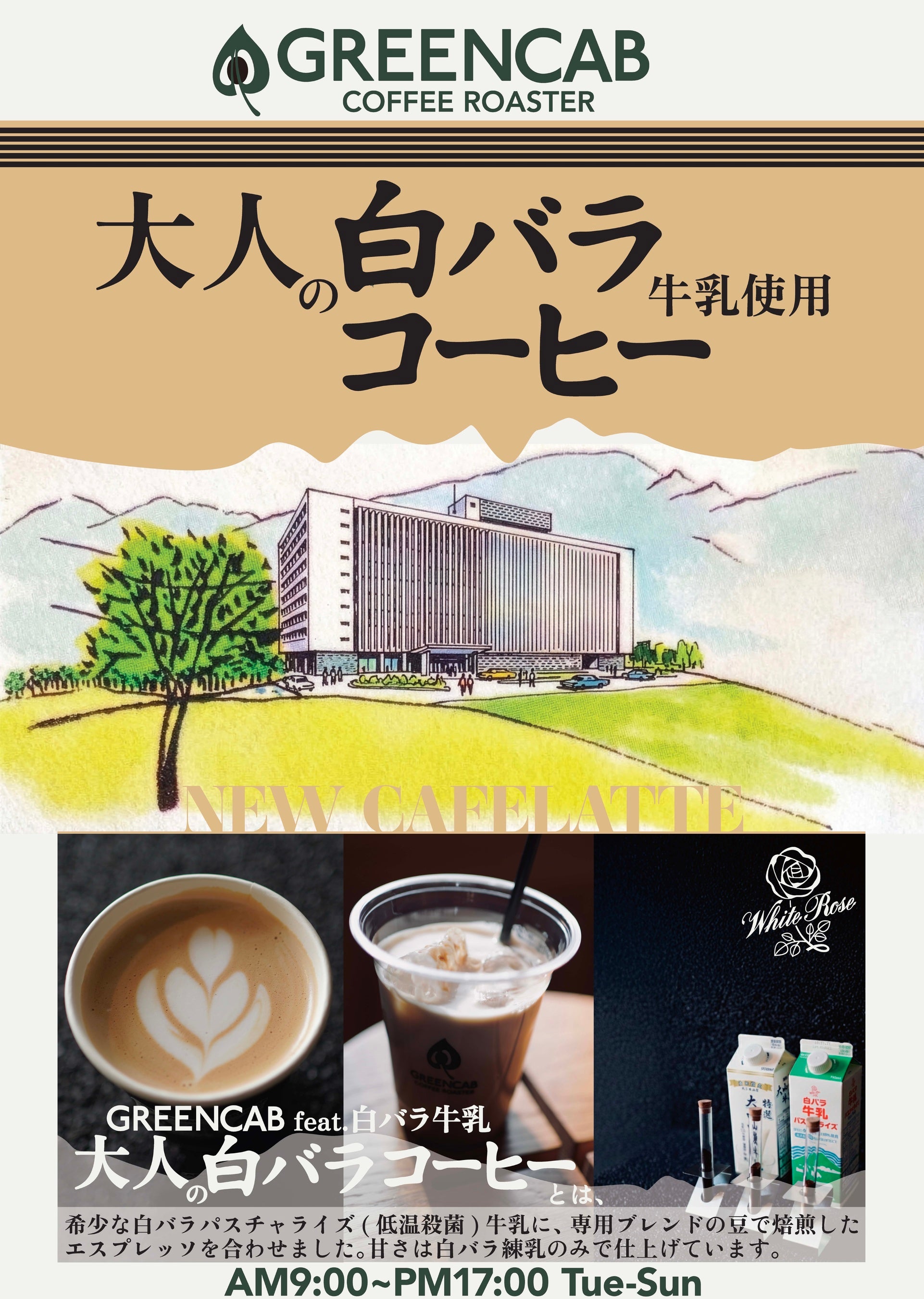 鳥取県産「白バラ牛乳」の繊細な風味を活かすため、大阪・北堀江のGREENCABが専用のコーヒーを設計。隠し味に練乳を加えた、希少な牛乳の余韻を愉しむ大人向けの「白バラ牛乳使用コーヒー」を発売します。