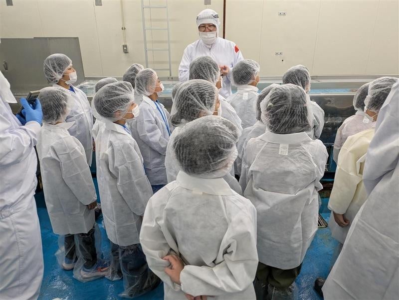 マリンフーズ株式会社のグループ会社である釧路丸水株式会社(以下「釧路丸水」)は、2025年12月、白糠町立白糠学園の3年生を対象に、工場見学を実施いたしました。これは、2024年11月に実施した同校5年生に続く訪問となります。