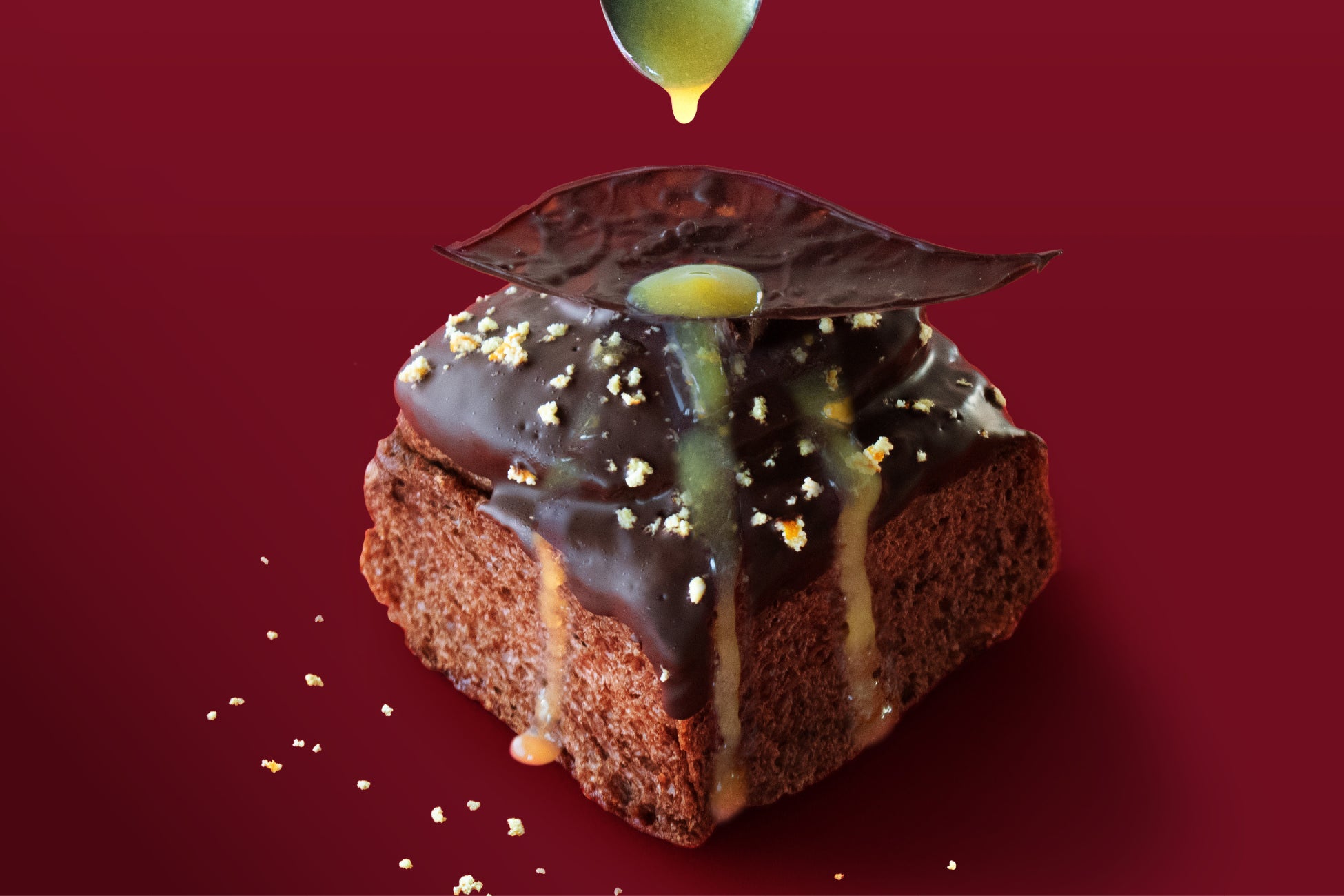 乳製品などの動物性食材を一切使わず、カカオの深みとコクを最大限に引き出したバレンタインにぴったりの一品。後がけの爽やかなシトラスソースが濃厚なショコラの味わいを引き立てます。