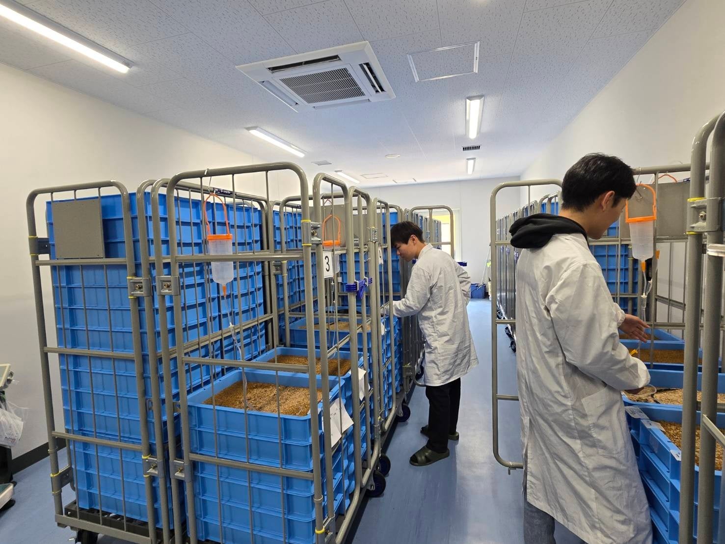 本試験は2026年4月まで実施し、5月以降は加温試験や機能性評価を追加していく予定です。当社は、2028年に年間100㌧、2030年度までに年間1,200㌧というDNPが目指すミールワーム粉末の量産体制の構築に向け、水槽試験設備や実養殖現場でのフィールド試験先を継続して提供し、実用化に向けた検証をともに加速していきます。