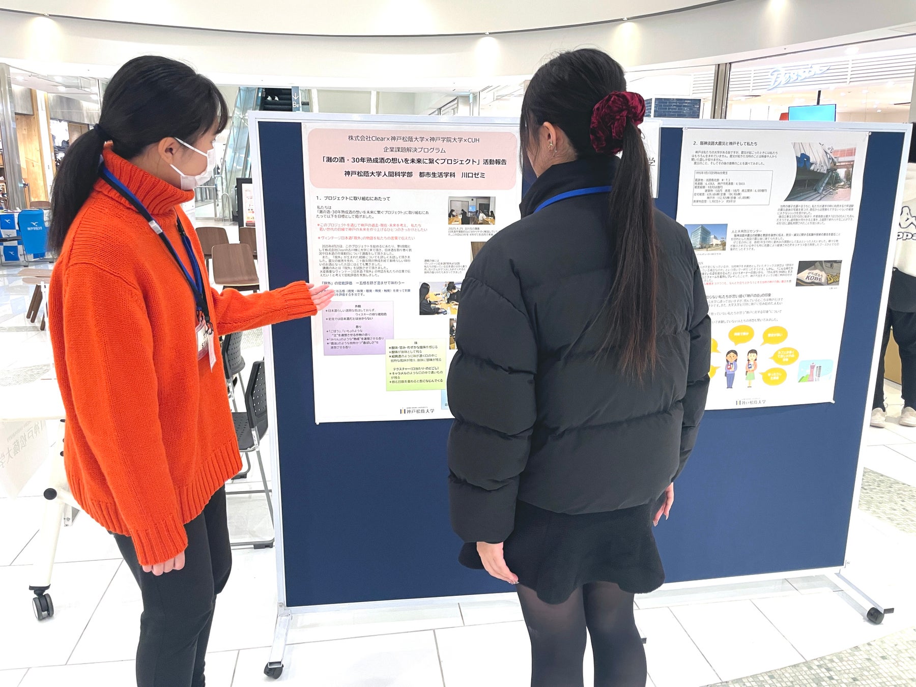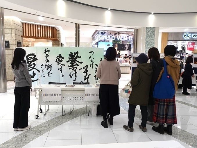 第31回神戸ルミナリエと連携し、神戸学院大学、神戸松蔭大学、日本酒ブランドSAKE HUNDRED、大学コンソーシアムひょうご神戸が、1月31日(土)、2月1日(日)に神戸ハーバーランドの商業施設「umie」で、防災・チャリティイベント「大人も子どもも震災を未来へつなぐ」を開催しました。umieを訪れた市民が会場に立ち寄り、学生による展示発表の見学や、体験型のコンテンツに参加しました。