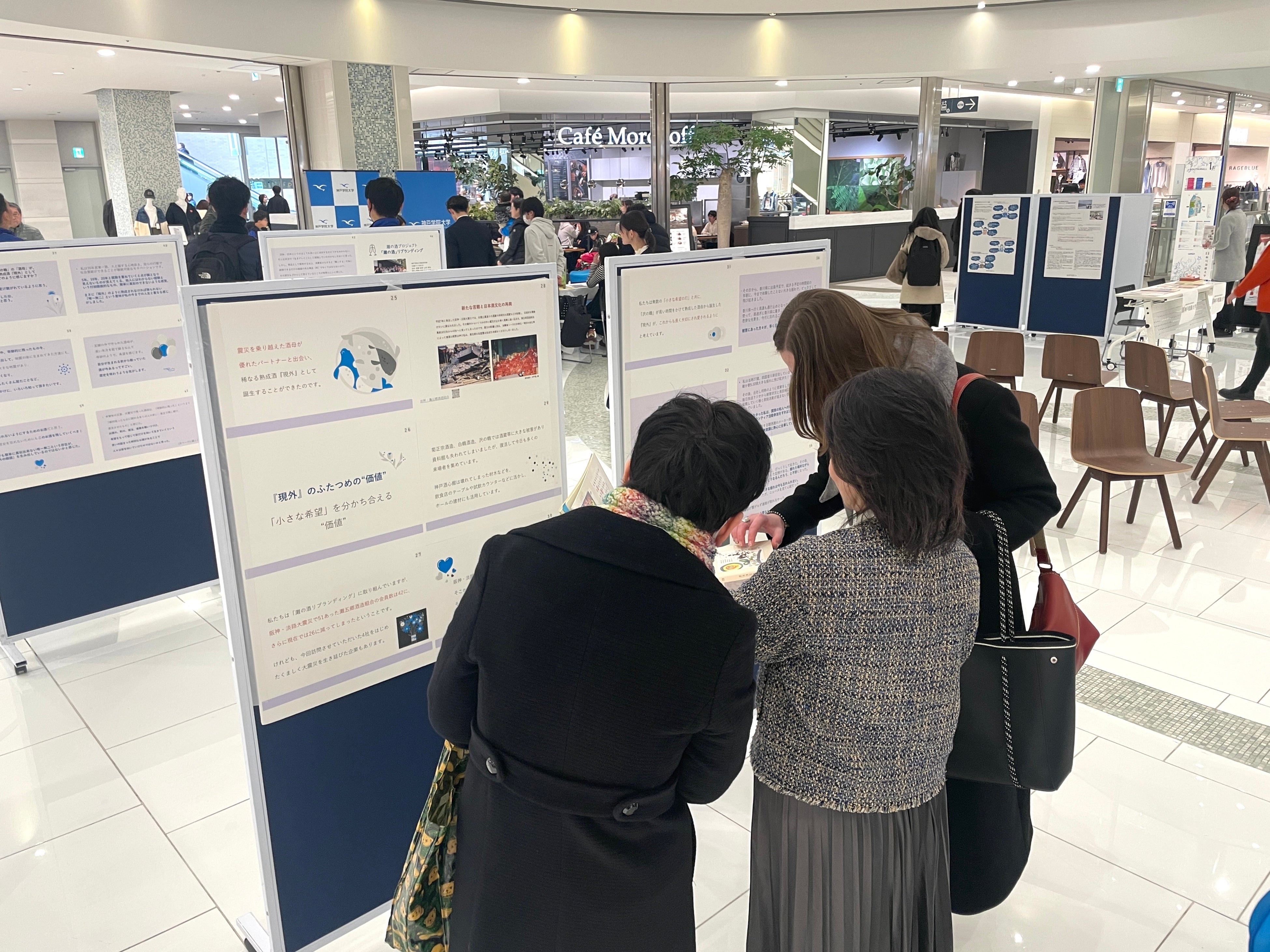 2月1日には、阪神・淡路大震災を乗り越えた「SAKE HUNDRED」のヴィンテージ日本酒『現外(げんがい)』のチャリティー試飲を実施。学生が1年を通して調査・研究してきた震災の記憶と、そこから生まれた「希望の灯」をいかに解釈し、未来へ繋ぐかをテーマにした展示発表も行いました。