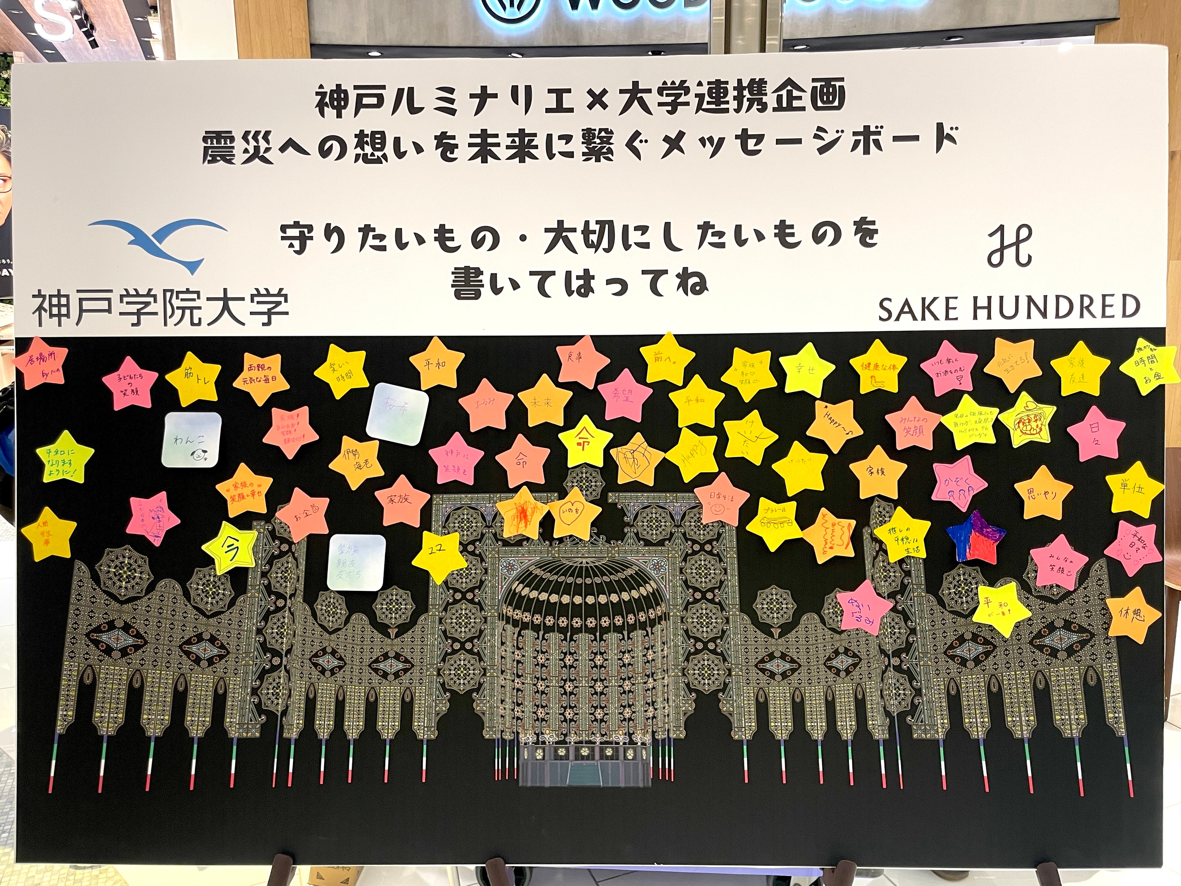 イベントでは「小さな希望の灯」を分かち合う体験として、参加した市民から「守りたいもの・大切にしたいもの」を集める体験企画を実施。多くの市民の灯が、同時開催しているルミナリエをイメージした展示ボードに掲げられました。