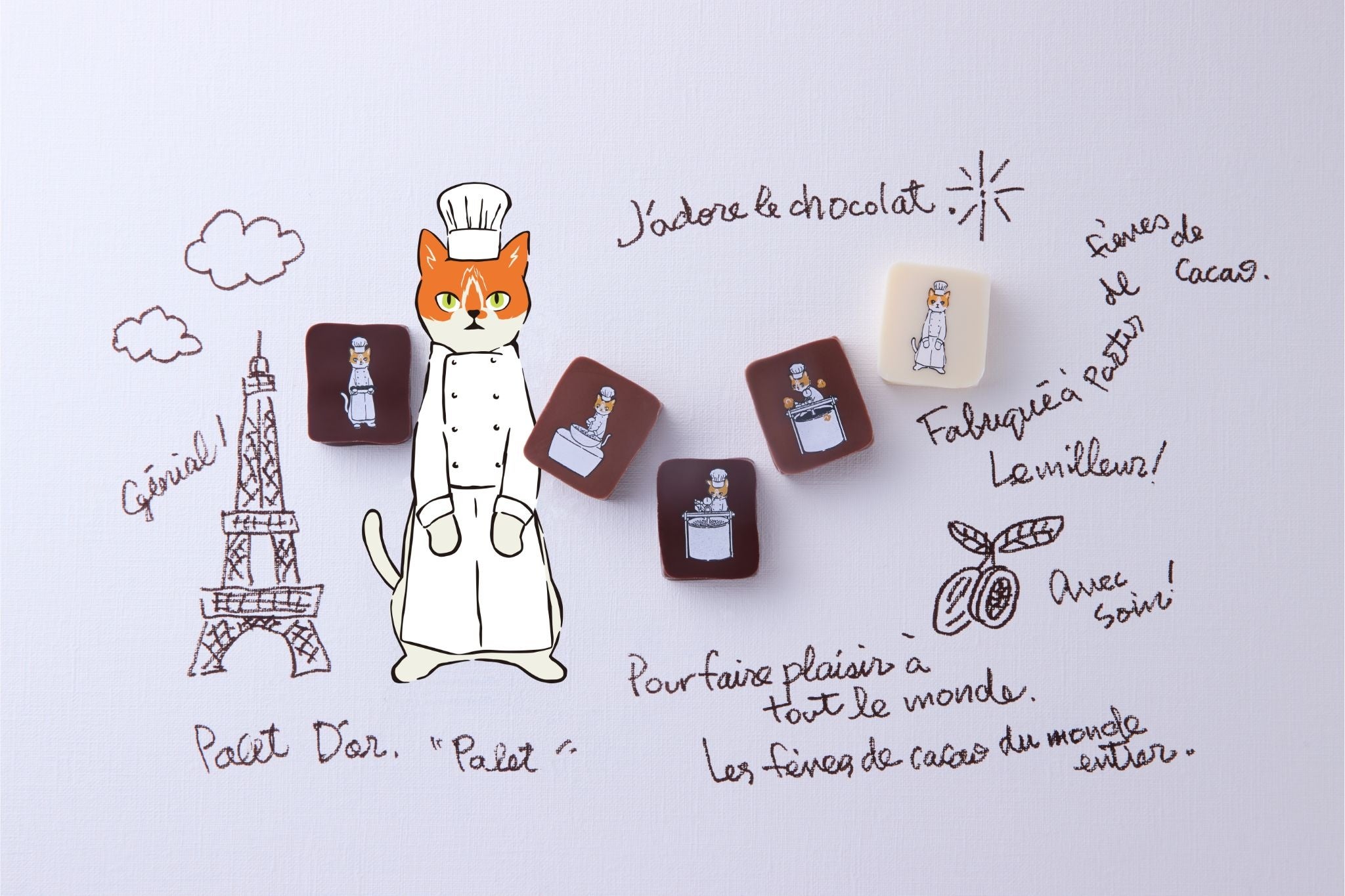 ショコラティエ パレドオールの新しい猫ショコラティエグッズは、遊び心をくすぐる、つい揃えたくなるアイテム。ショコラティエ パレドオールの今後のグッズ展開にもご注目ください。