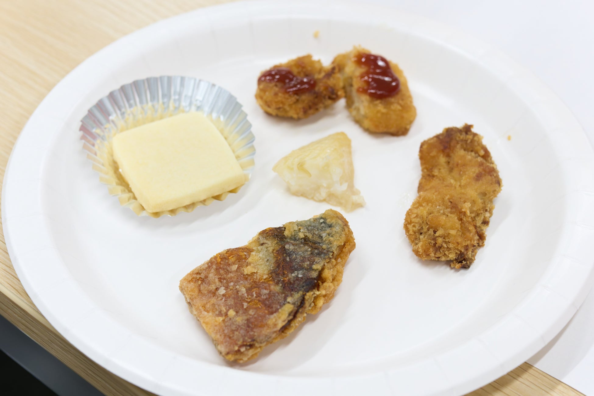 すくすくOisixでは、食材そのものをお届けするサービスのほか、カット済みの野菜や、下処理済みの加工品などをミールキット形式でお届けするサービスも提供しています。イベント後半では、下処理済みのメニューとして「さばの竜田揚げ」「チキンカツ」「かれいのみりん醤油漬け」「クッキー」の試食も行いました。