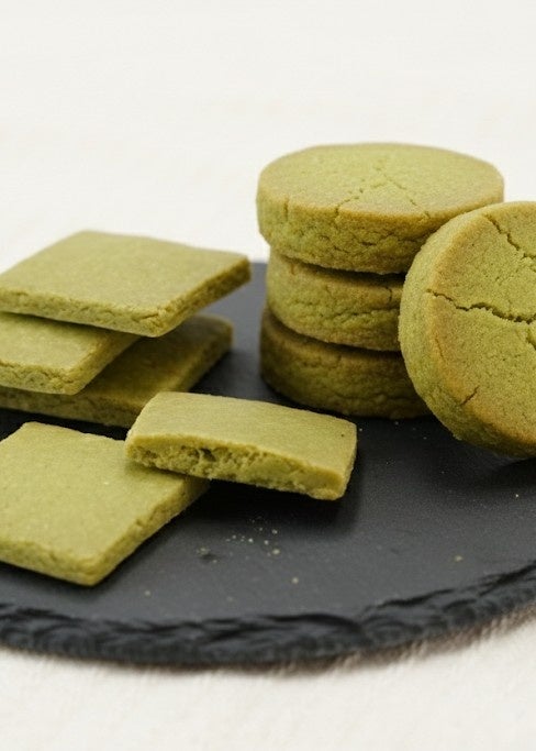 熊本県錦町産の米粉に緑茶を入れ、錦町の恵みを詰め込んだグルテンフリーのガレットとサブレ。