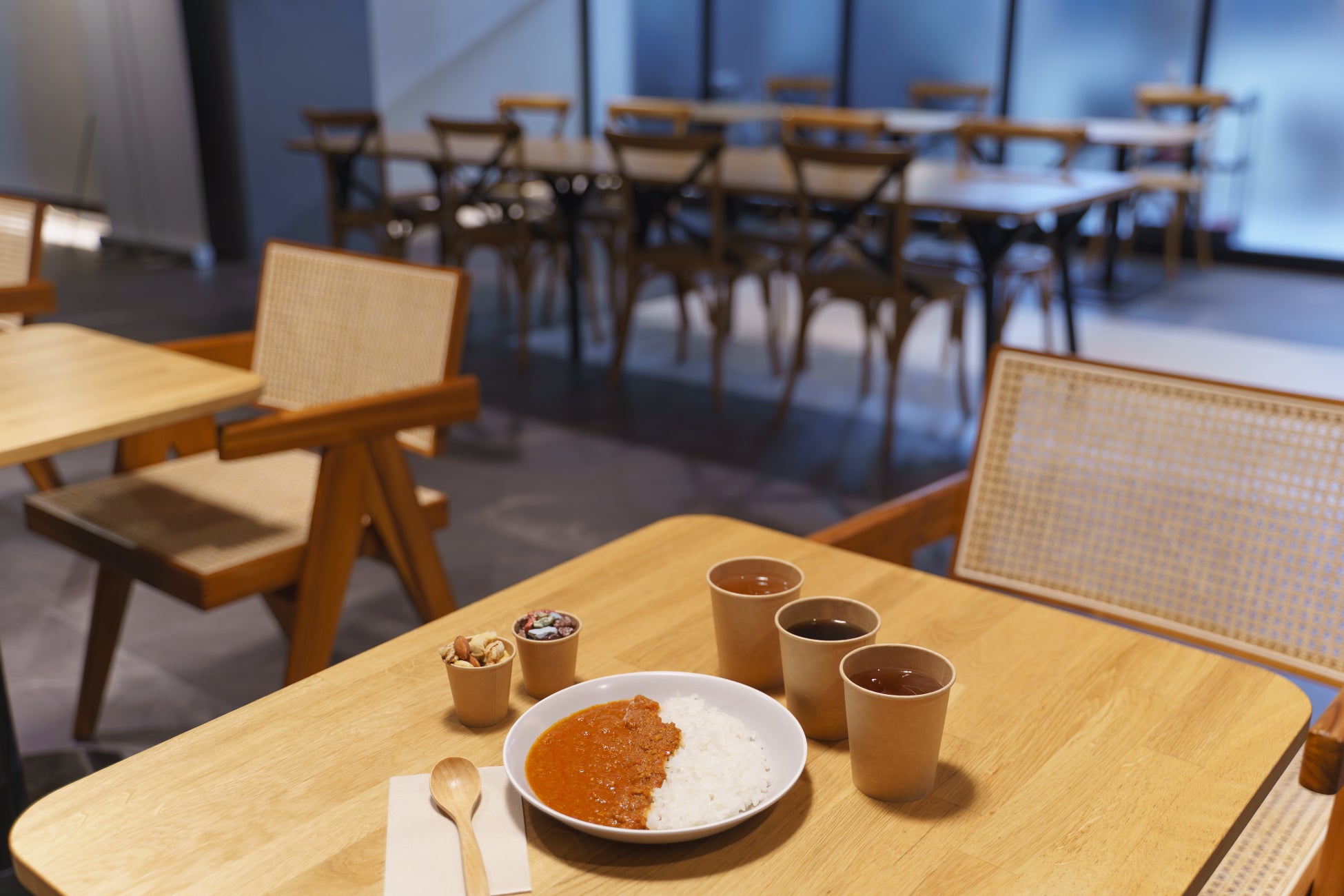 PC作業もしやすい空間に、カレーやドリンクをご用意し、軽くお腹を満たしながら思い思いの時間をお過ごしいただけます。
