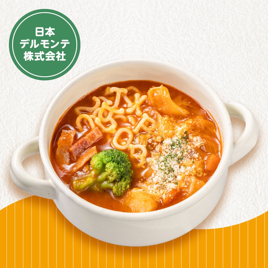 「デルモンテ リコピンリッチトマトピューレ」で旨味を出したミネストローネに、地域で親しまれているABCマカロニを組み合わせました。寒い冬にピッタリの温まるスープです。