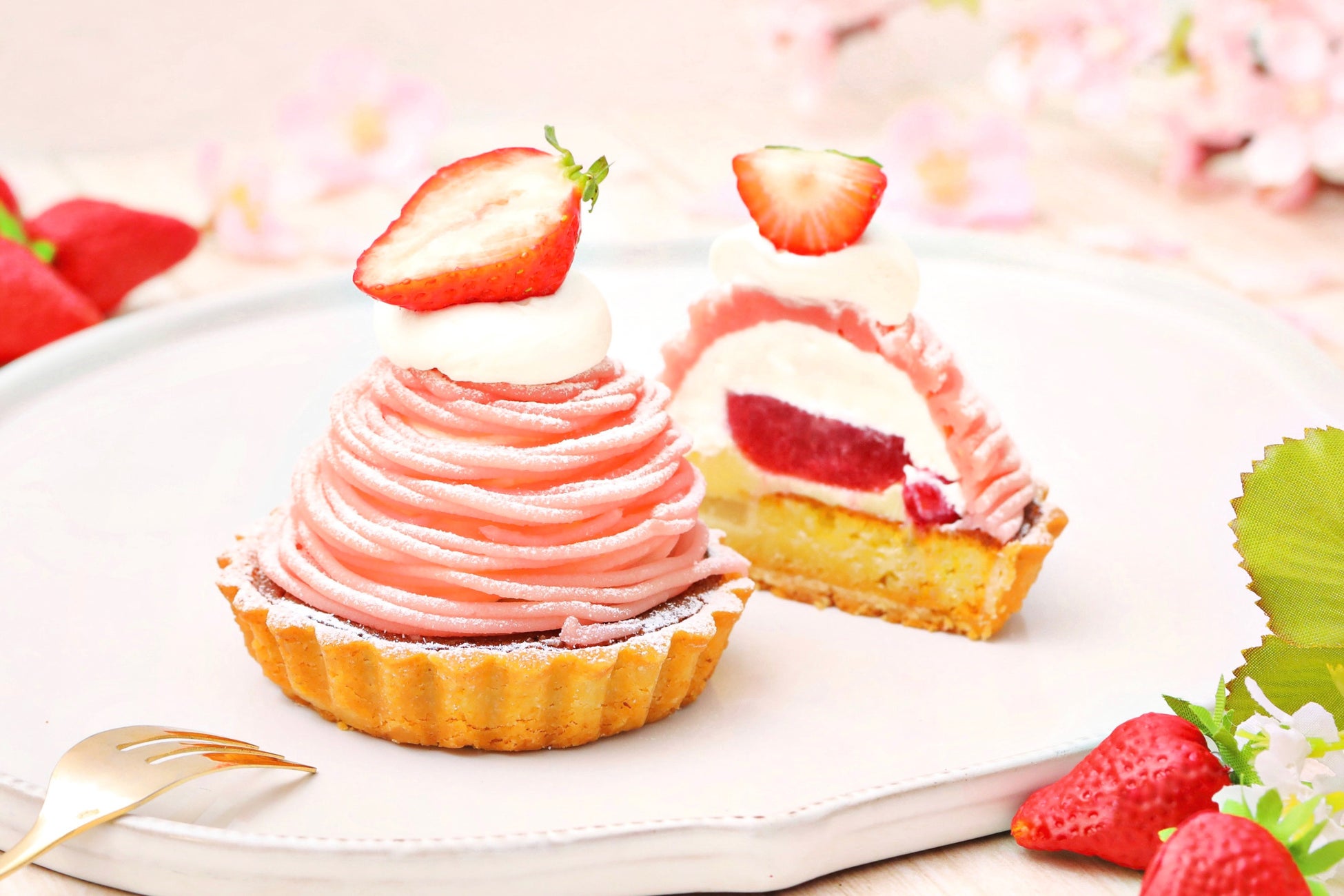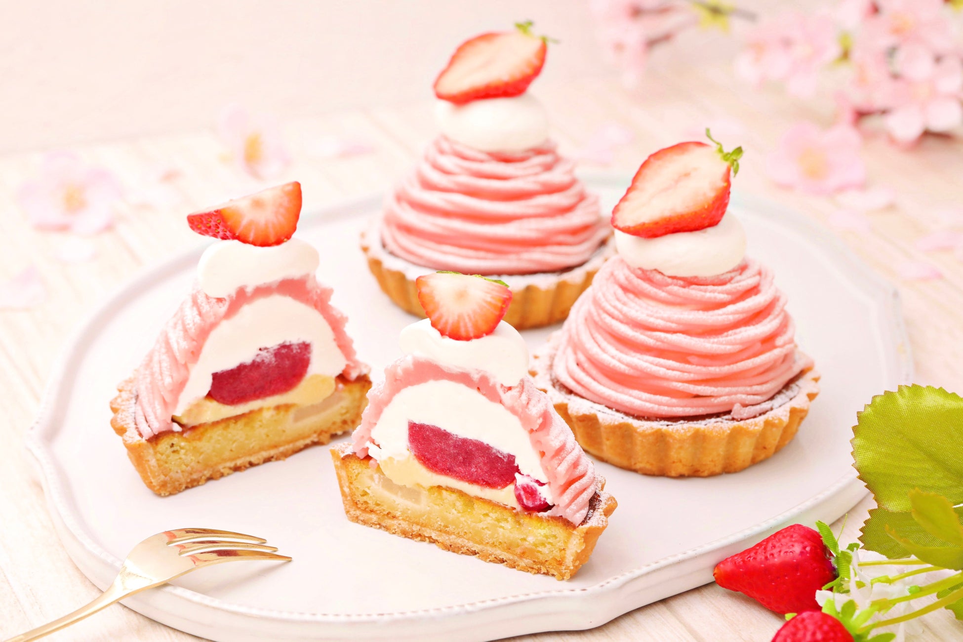 国産苺を飾った『苺とさくらのモンブラン』&満開の桜を思わせるような『さくらのプチモンブラン』の全2種