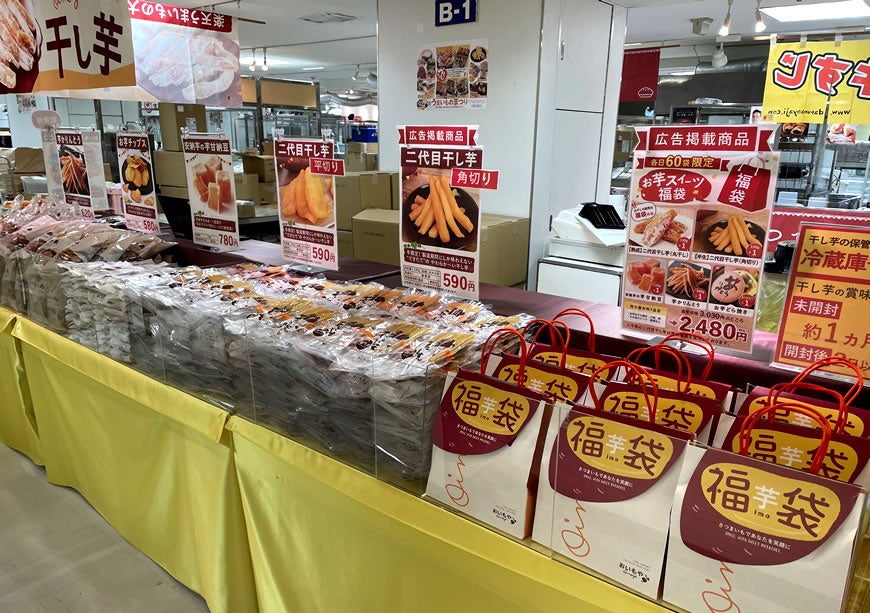 2026年2月末の名鉄百貨店閉店を控えた今回の催事では、おいもや一番人気の「二代目干し芋」をはじめ、定番商品を中心に販売いたします。