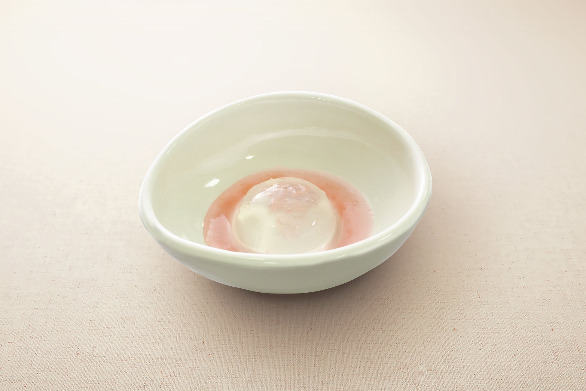 桜ジュレの淡い香りがふわりと広がり、ぷるんと揺れる水わらびもち。