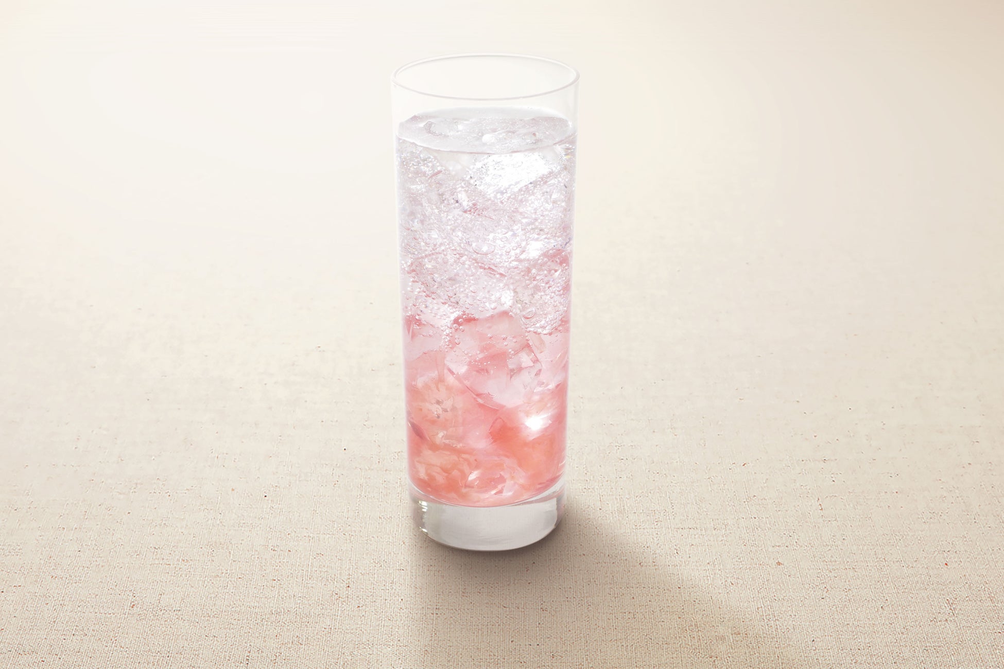 かき混ぜるたび、グラスの中で淡いピンクがふわりと広がり、まるで桜の花びらが水面に舞い落ちる瞬間を閉じ込めたようなアイスドリンク。