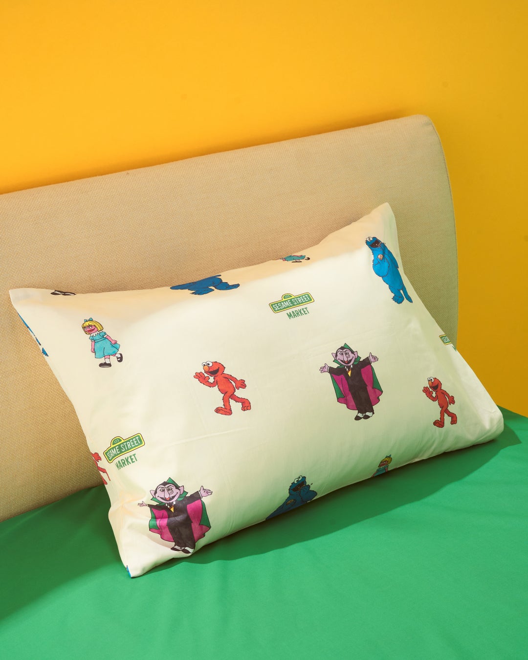 セサミストリートの昔の絵本に着想を得て描き起こしたアートを総柄であしらった、ブランド初となる布団カバー、ボックスシーツ、ピローケースの寝具3点セット。セサミストリートのキャラクターたちをどこか懐かしくあたたかみのあるタッチで表現し、物語の世界観をそのまま閉じ込めたようなデザインに仕上げました。ベッドルームに自然に馴染む落ち着いたカラーリングで、一日の終わりと始まりをほっとくつろげる時間にしてくれるアイテムです。