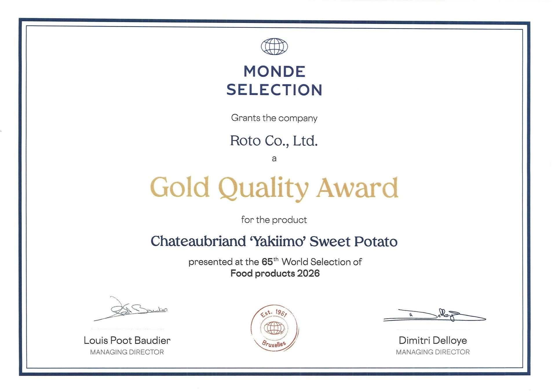 同社がモンドセレクションに応募するのは今回が初めてで、焼き芋としてはモンドセレクション世界初受賞の快挙だ。