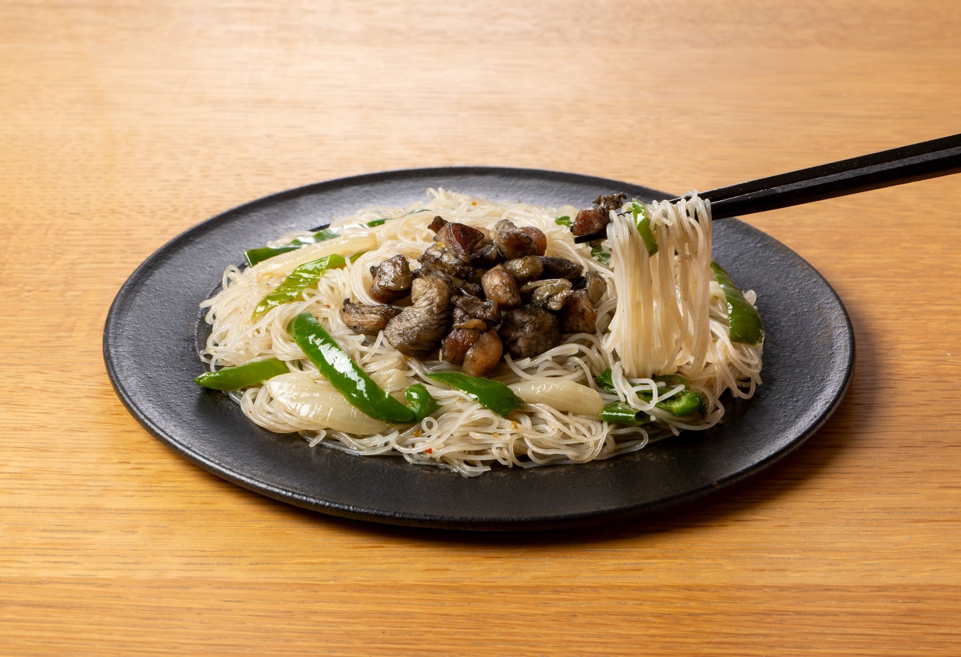・商品名:みやざき地頭鶏(じとっこ)炭火焼とビタミンピーマンの焼ビーフン 赤ゆずこしょう風味