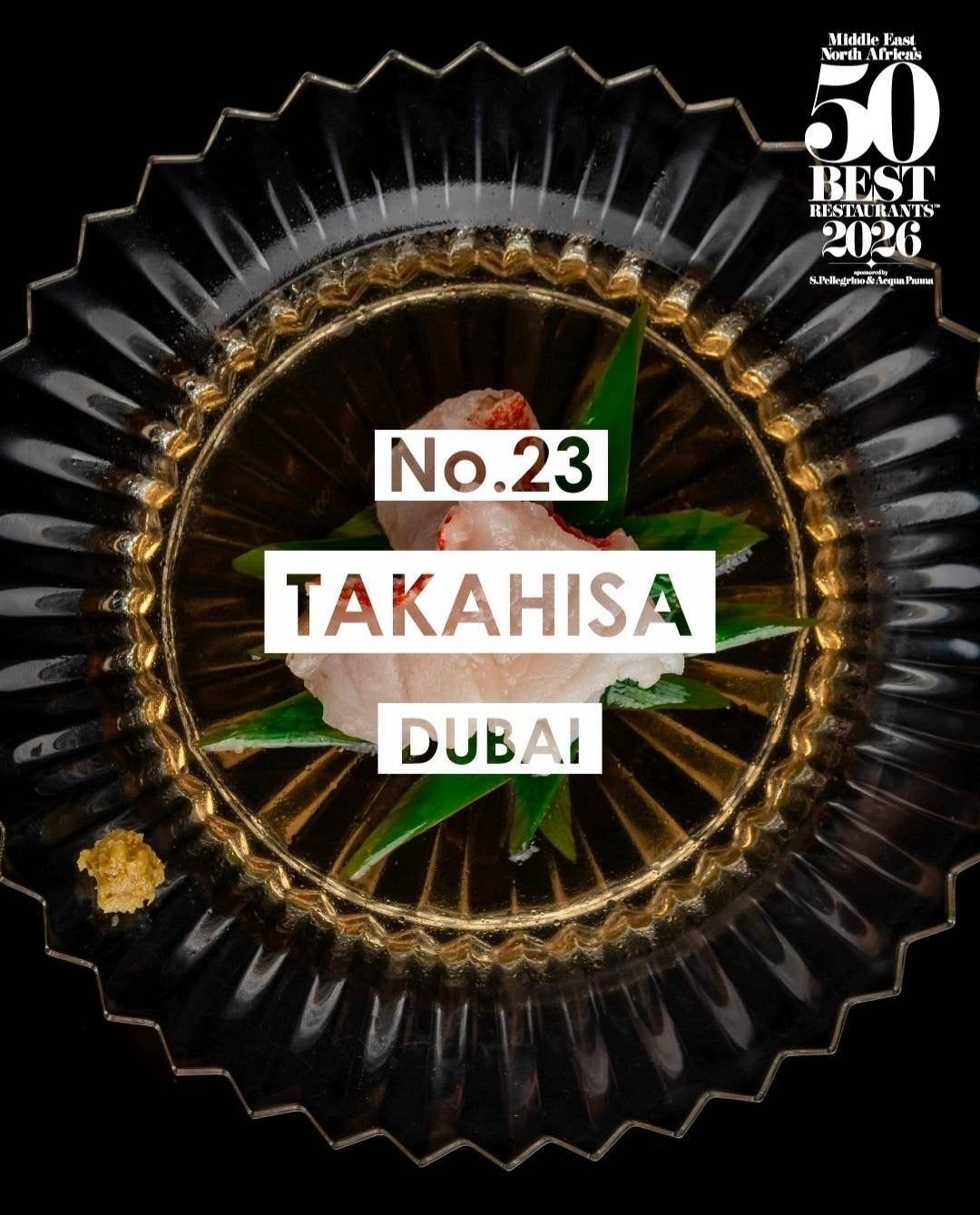 アラブ首長国連邦・ドバイの高級日本料理店「崇寿 TakaHisa Japanese Restaurant」(以下、「崇寿 TakaHisa」)は、2026年2月3日(火)、アブダビで開催された世界的に権威のあるガストロノミーアワード「World’s 50 Best Restaurants」(世界のベストレストラン50)の中東・北アフリカ版「MENA’s 50 Best Restaurants 2026」(以下「MENA」、読み:メナ)において、堂々の第23位にランクインしました。