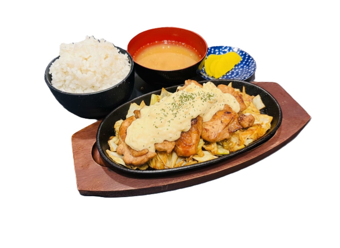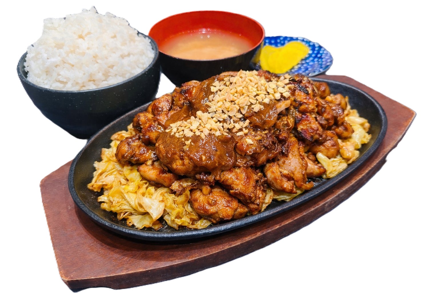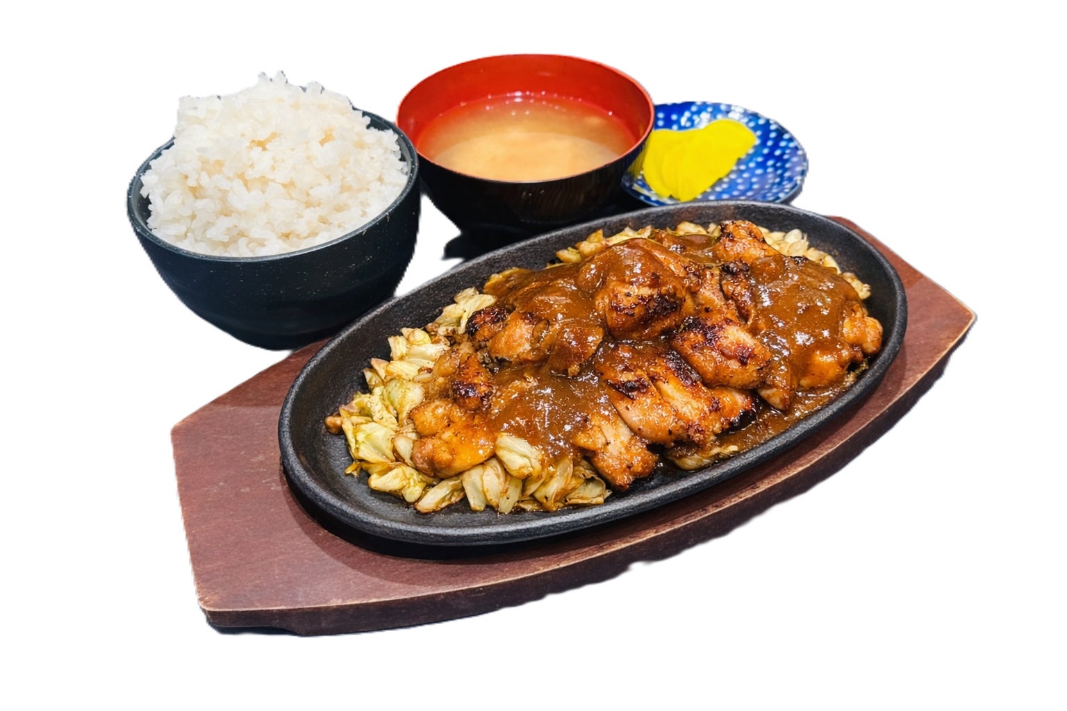 ~お昼の看板メニュー!!「熱々の鉄板もも焼き」に「ニンニク」「カレー」「タルタル」と男子が好きな味をチキンと合体させました。~