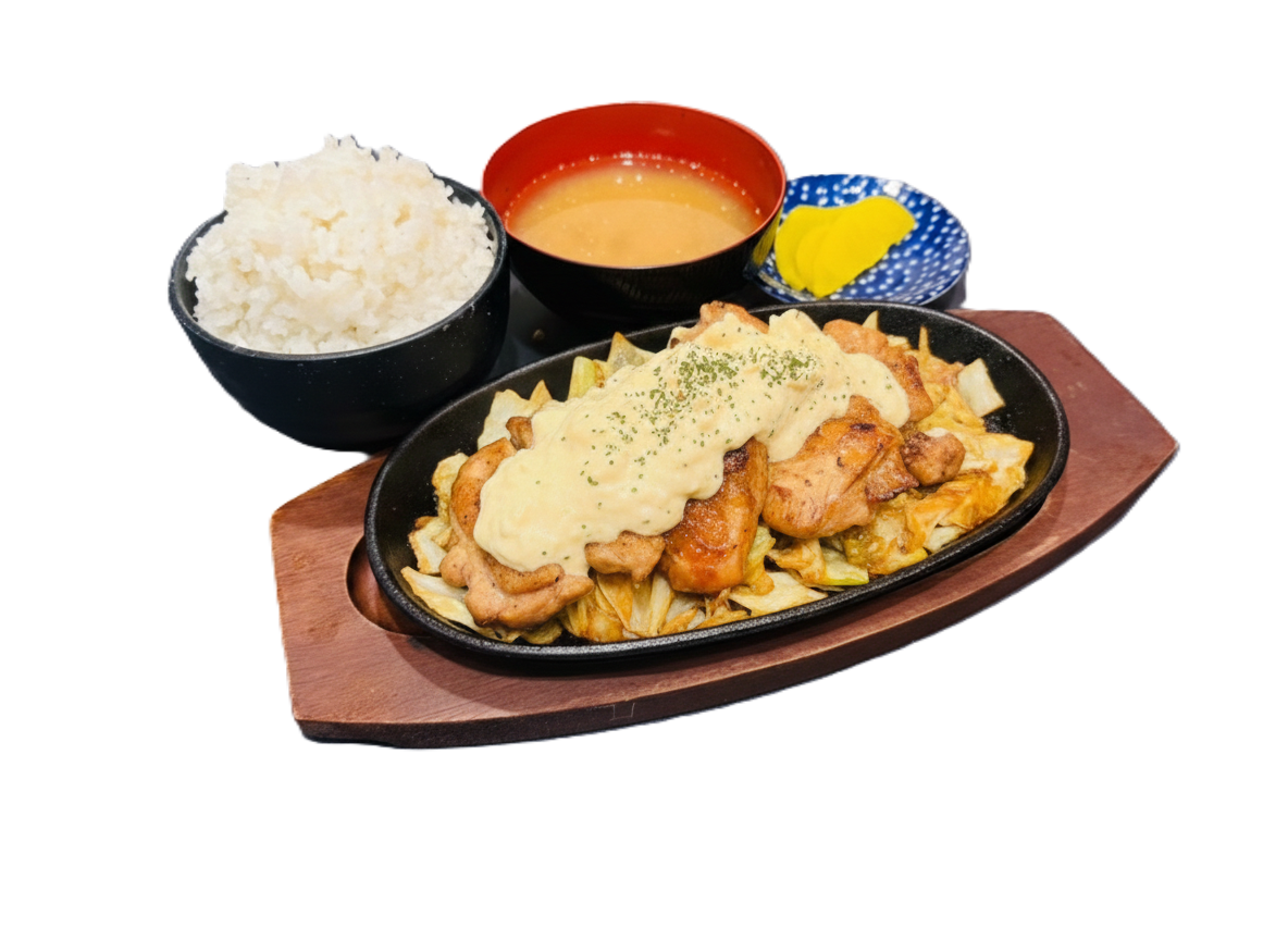 ~お昼の看板メニュー!!「熱々の鉄板もも焼き」に「ニンニク」「カレー」「タルタル」と男子が好きな味をチキンと合体させました。~