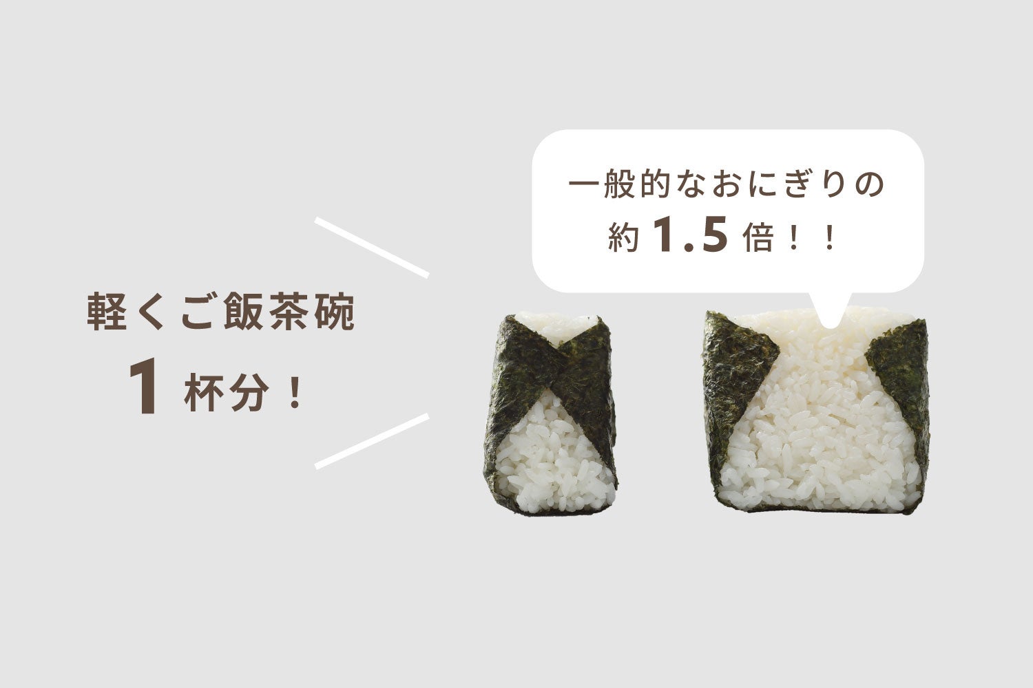一般的なおにぎりの約1.5倍。創業者が子どもの頃に食べていたおにぎりを再現した、「美味しいご飯をおなかいっぱい食べてほしい」という母の想いが込められたボリュームです。