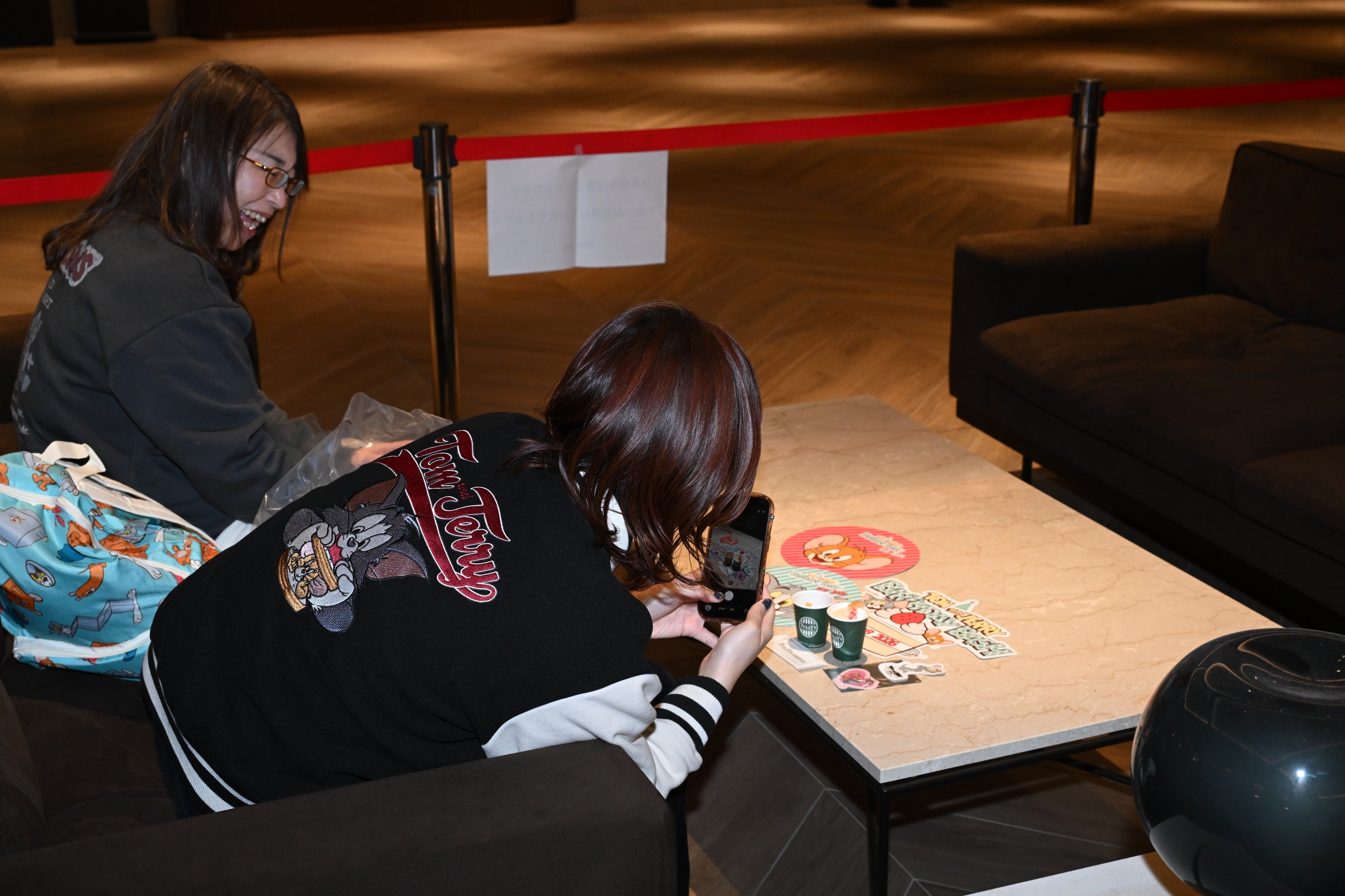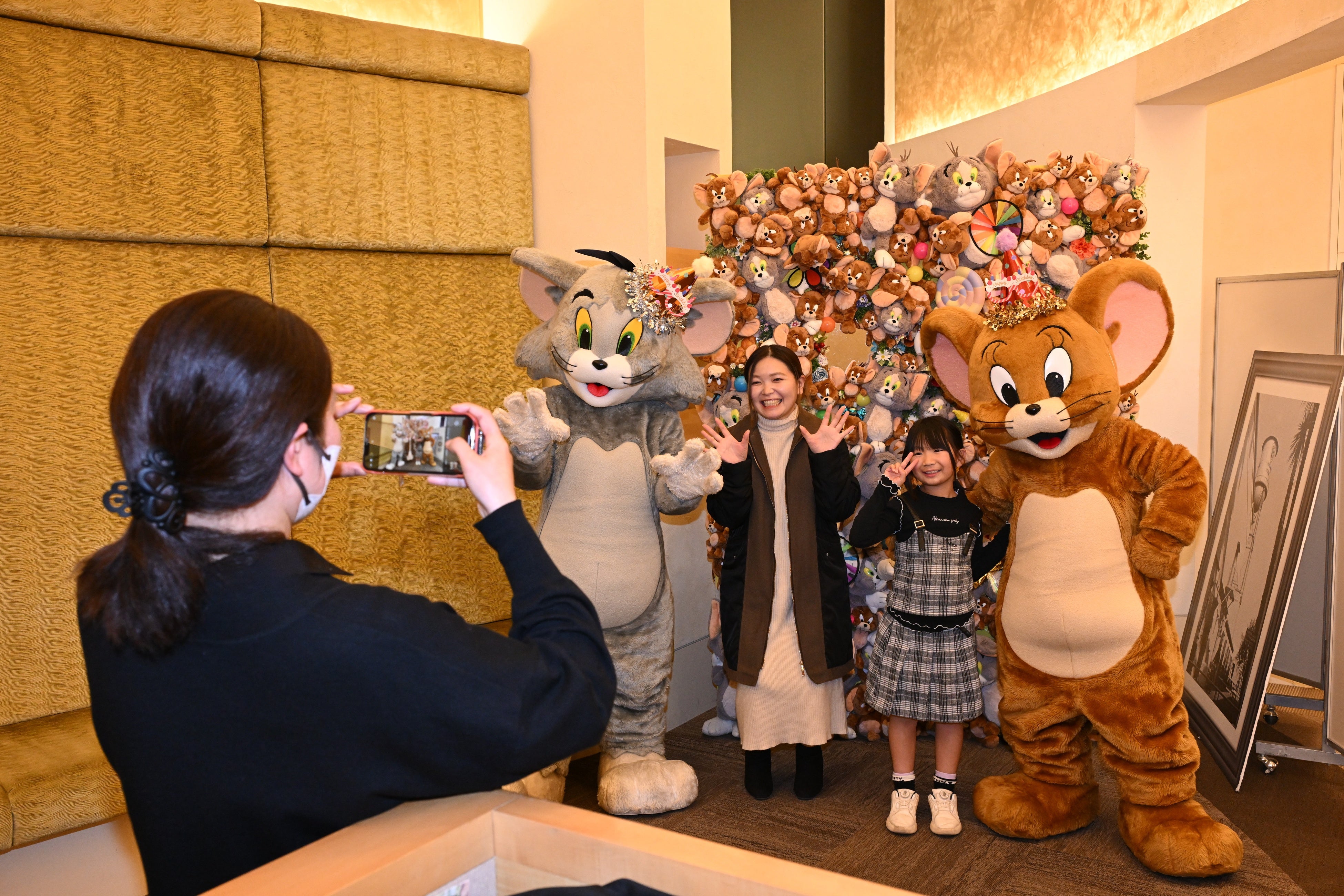 その他にも、会場の入り口にフォトスポットとして壁一面にトムジェリのぬいぐるみが敷き詰められたぬいぐるみウォールやトムジェリの缶バッジが出てくるパネルガチャ、そしてこの日初お披露目のころんとしたシルエットが可愛いバルーンスタチューなどが並び、ファンはそれぞれ記念撮影を楽しんでいた。