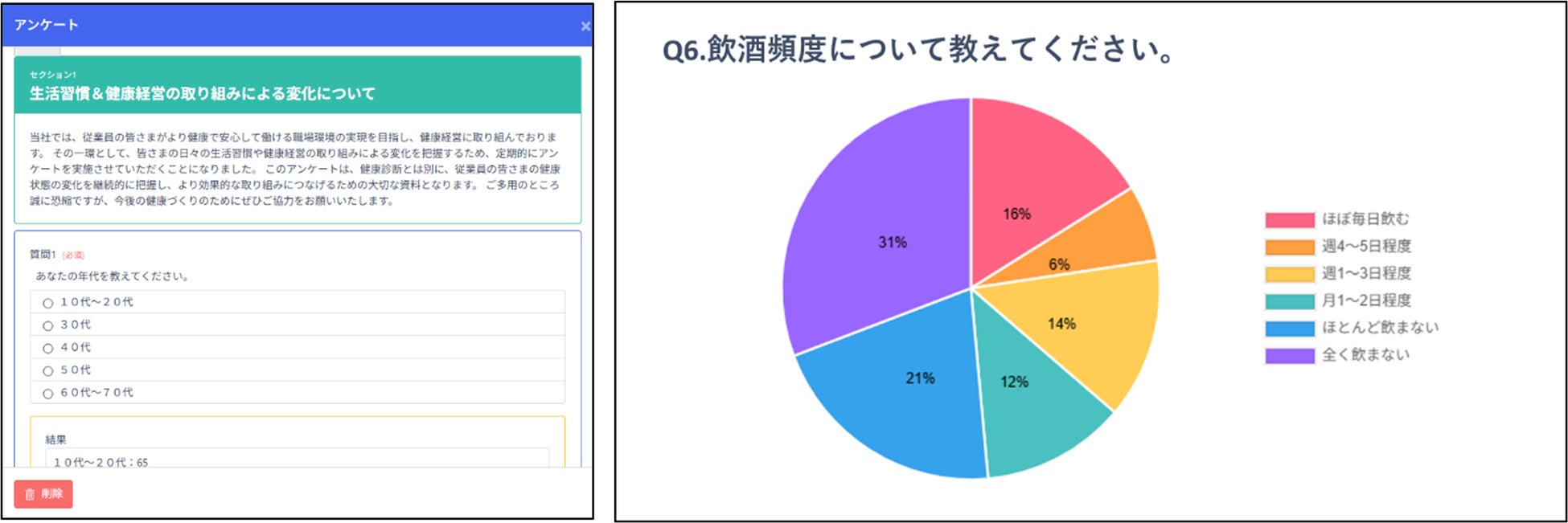 従業員の健康経営に対する意見や生活習慣を把握するため、実施しています。当社における健康課題や取り組みへのニーズを可視化し、実態に即した健康施策の検討・改善につなげています。