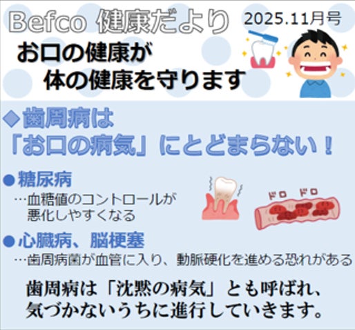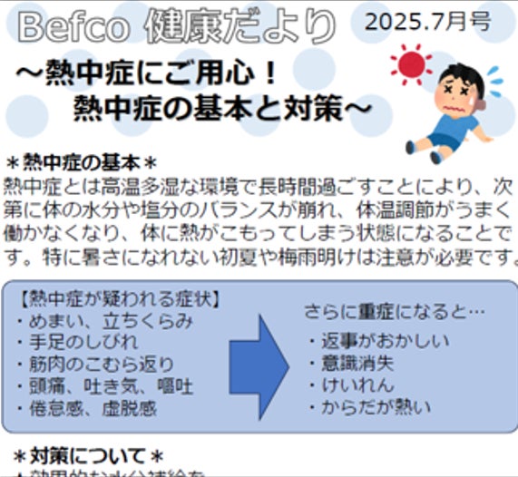 社員一人ひとりの健康意識向上を目的に、季節や社会情勢に応じたテーマで「健康だより」を毎月作成し、社員アプリを通じて配信しています。日常生活の中で実践しやすい情報提供を行うことで、健康行動の定着を図っています。