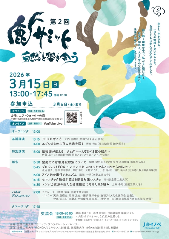 交流会:サミット終了後、18:00からエゾシカ料理を囲んだ交流会(参加費4,000円/先着70名)を予定しています。