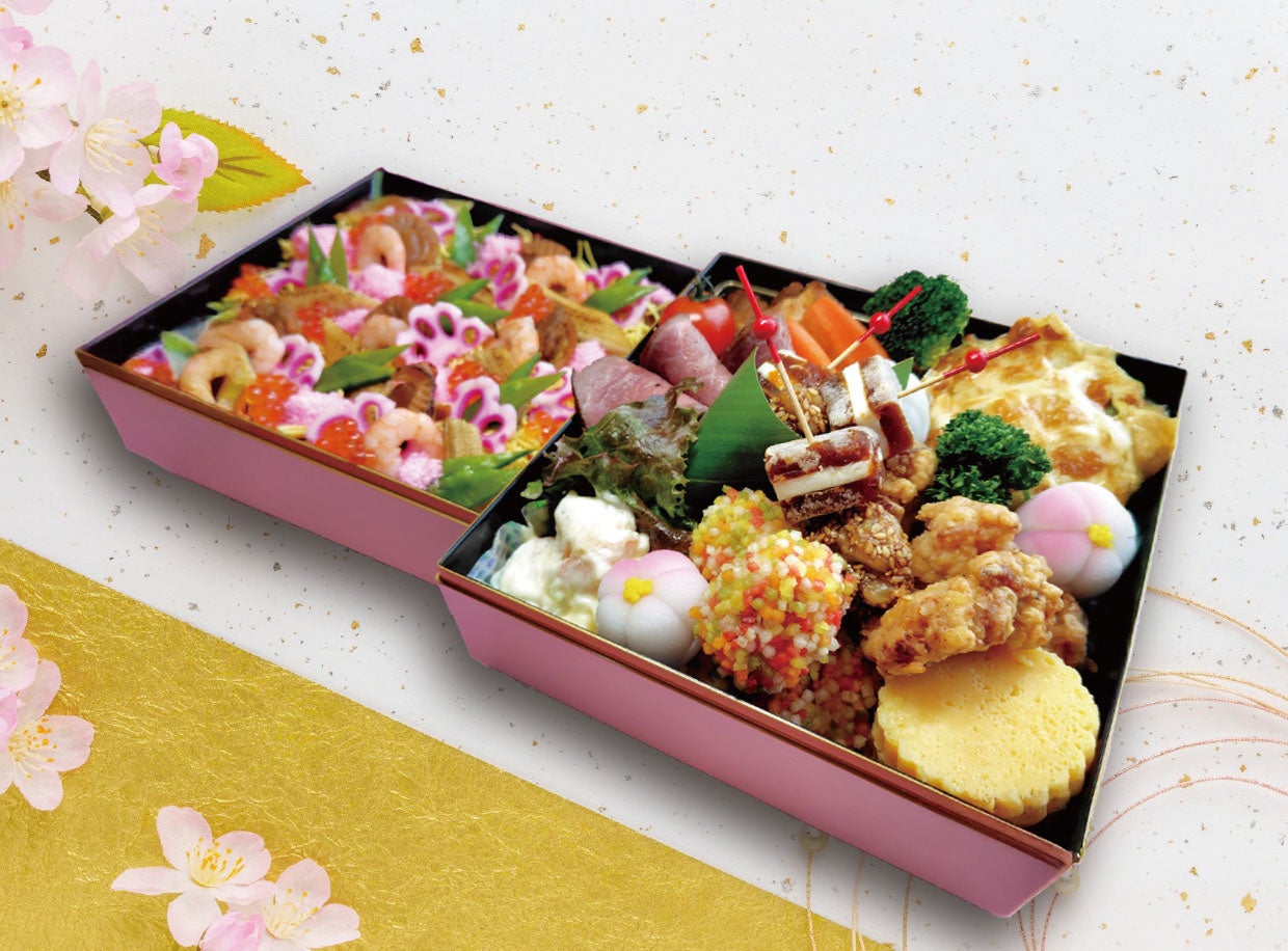 「ひなちらし二段重」は、稚内ブランドの宗谷黒牛を使用したローストビーフなどを盛り込んだ華やかなお料理と、彩り豊かなちらし寿司を、二段のお重に盛り付けた豪華な内容となっております。