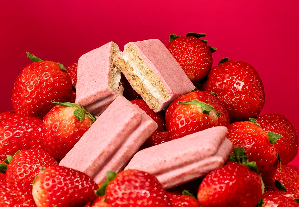 シュガーバター香るさくさくのホワイトショコラサンドをまるごと包み込んでいるのは、苺配合率40%(※)を誇る“濃苺ショコラ”。ホワイトショコラと濃苺ショコラがとろけ合って、お口いっぱいに広がる贅沢な「いちごミルク」の味わいがたまりません。春にしか味わえないごちそうサンドです。自分用のご褒美スイーツはもちろん、ホワイトデーの贈り物にもどうぞ!