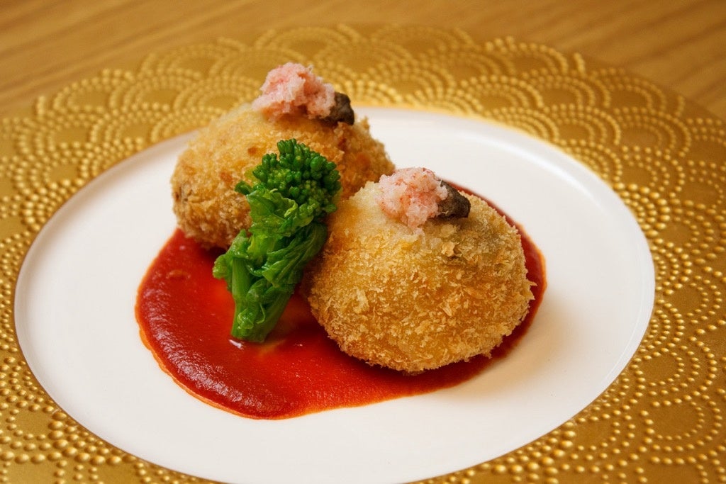 ▼鳥取県産紅ズワイガニとタラの芽のクリームコロッケ (税込1,430円)