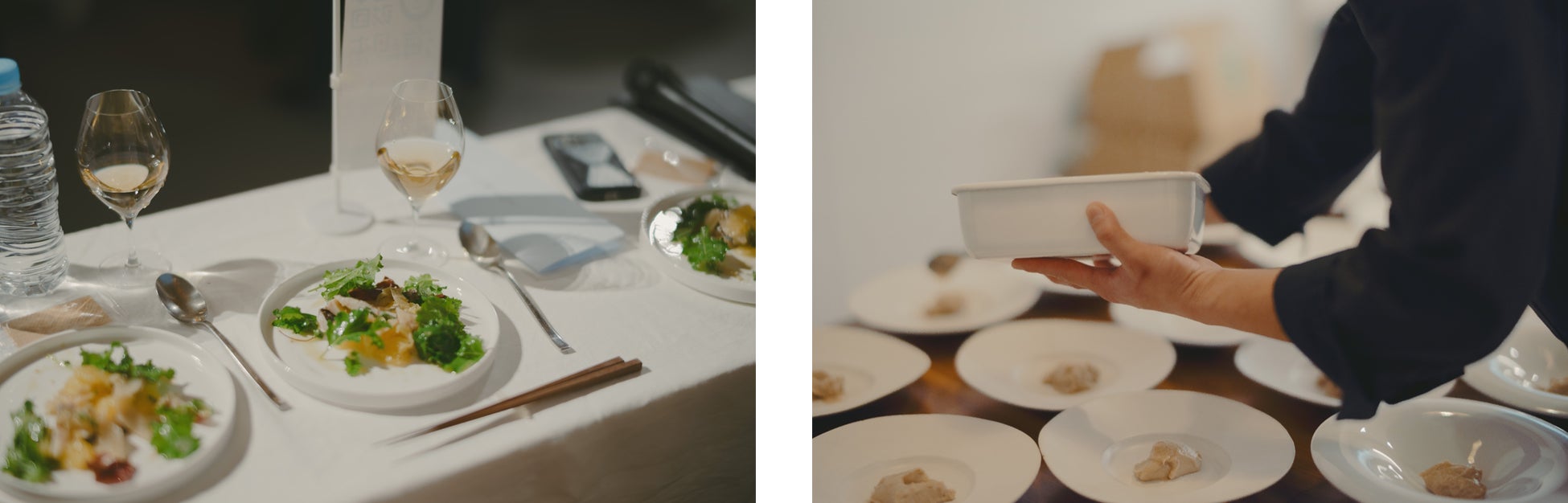 トークセッションに合わせて、大分県内にて活躍される料理家兼ソムリエの大塚氏によるアイゴを使用したショートコースを提供をしていただきました。