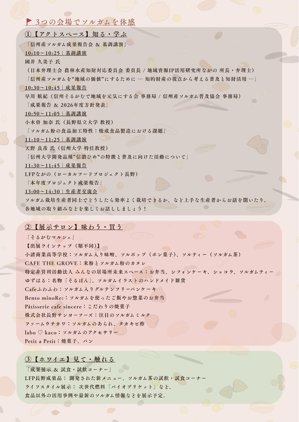 その想いを込めて、ソルガムの背景にある物語と、食材としての楽しさを『クリーン×ジャンキー』というコンセプトに凝縮しました。信州産ソルガムの新しい可能性、ブランド『SORGAM』をここにお披露目いたします。」