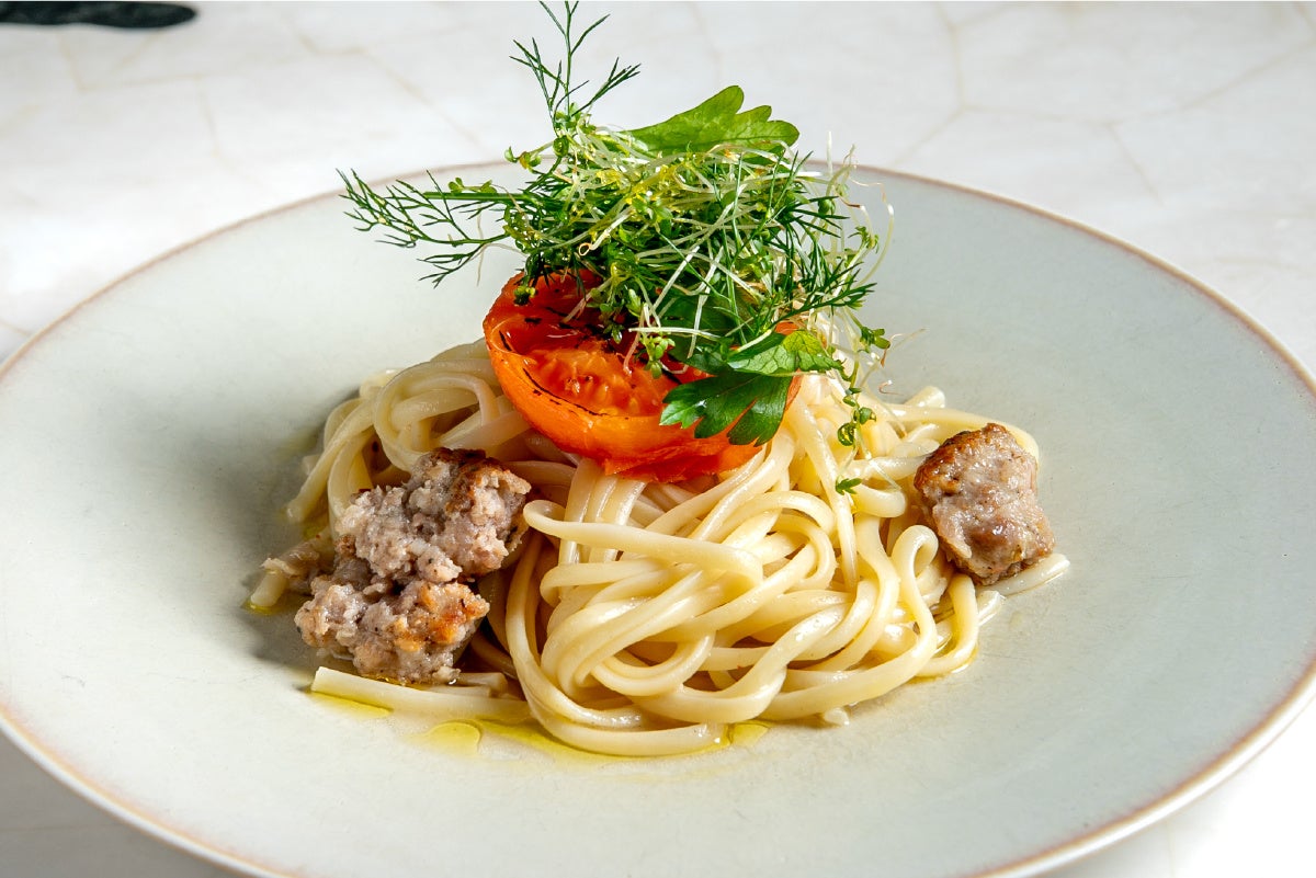 サルシッチャの旨味と、じっくりとローストして甘味を引き出したトマト。