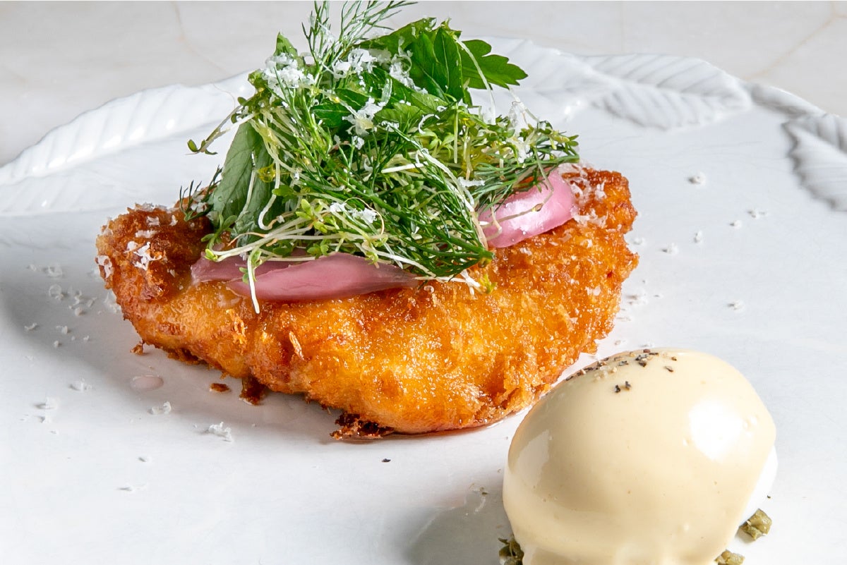 サクサクの衣に仕上げたカツレツに、旨味豊かなオリジナルマヨネーズソースのウフマヨを合わせました。