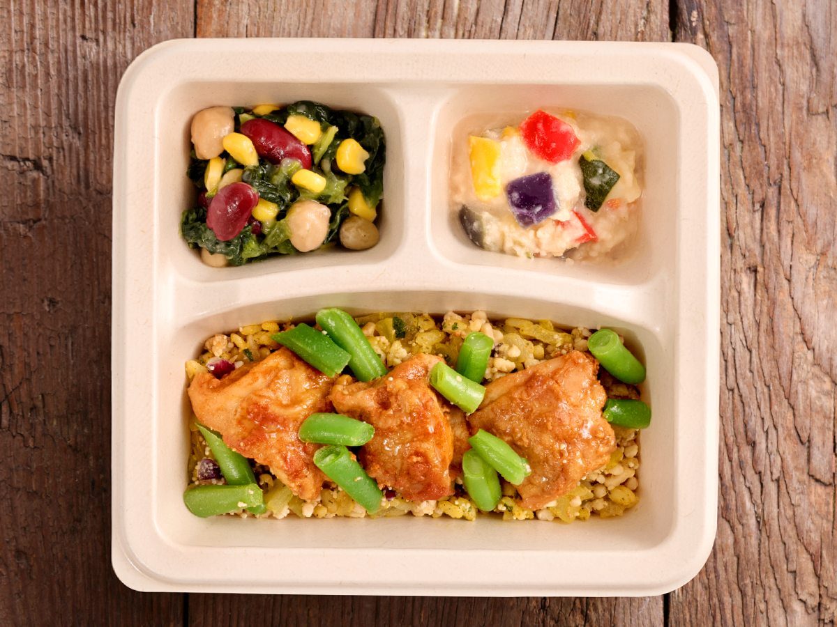 スパイス香るインド風カレーピラフに、香ばしく焼き上げたタンドリーチキンをトッピングした満足感のある一皿です。お米に大豆ミートをブレンドすることで、豊かな風味はそのままに、パラパラ食感を実現。仕上げにパクチー、フライドオニオン、赤玉ねぎを添え、本格的な香りと味わいをプラスしました。