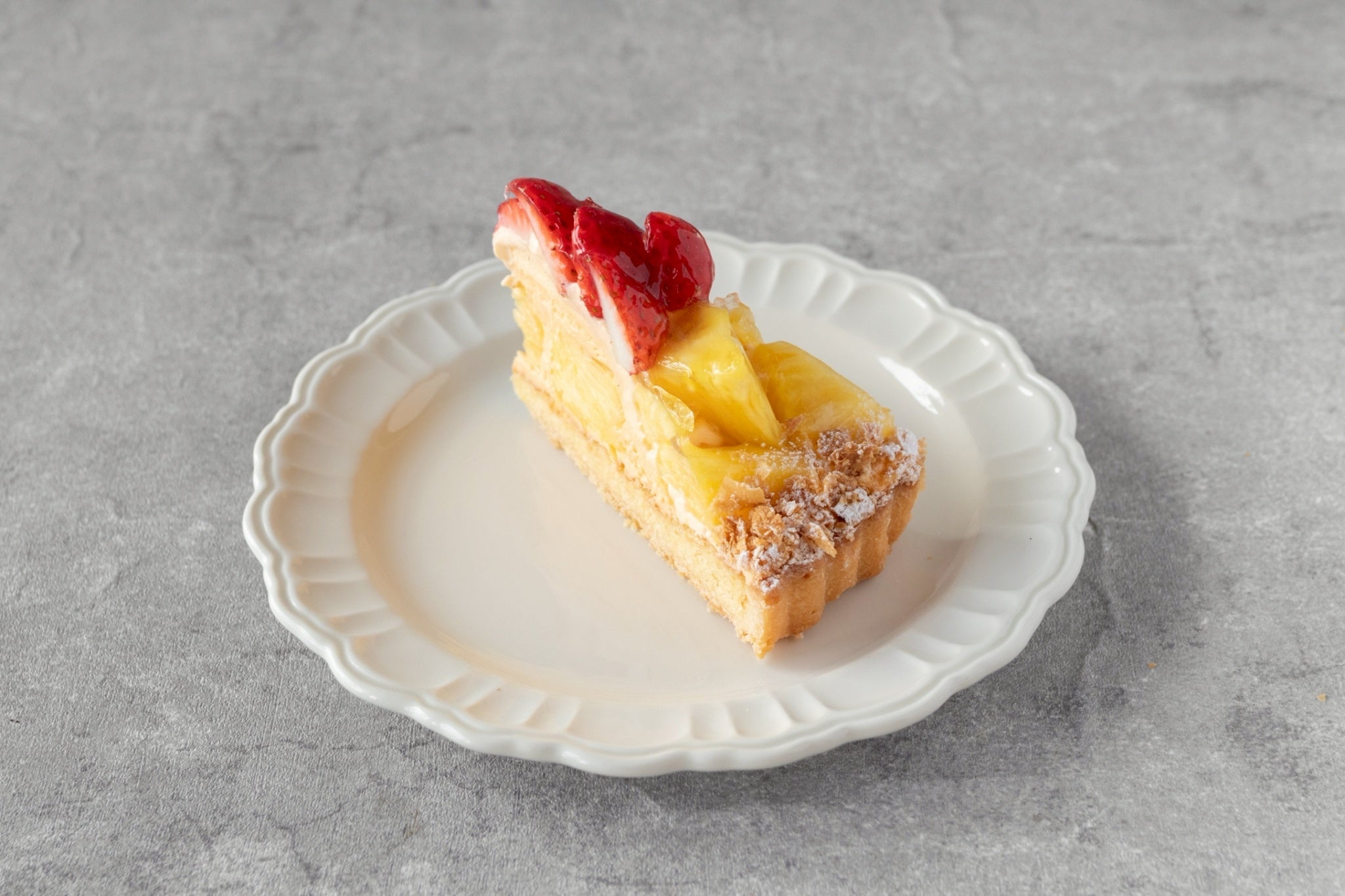 ココナッツを練り込んだタルト生地に、パイナップルといちごを合わせました。