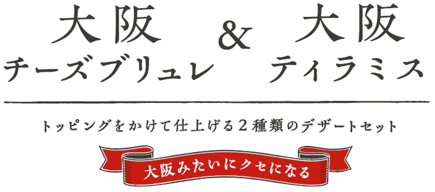 大阪みたいにクセになる!でおなじみの「大阪チーズブリュレ」と「大阪ティラミス」を一度に楽しめるセットにしました。それぞれ、別添のトッピングをかけてお楽しみください♪