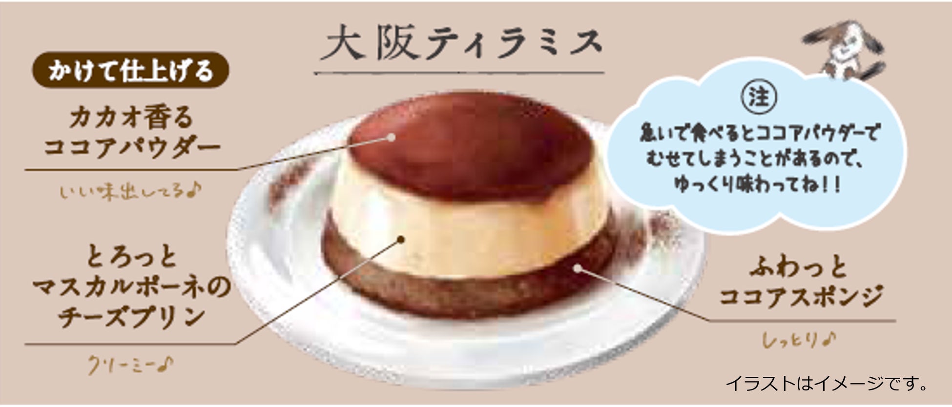 「大阪ティラミス」はとろけて濃厚クリーミー♪ココアパウダーをたっぷりかけて仕上げる、心もとろけてクセになる2層仕立てのふわとろティラミス!