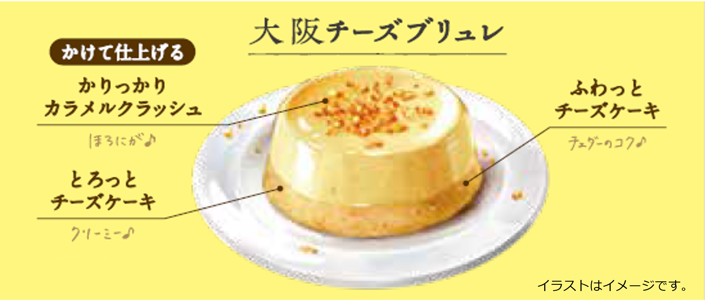 「大阪チーズブリュレ」は、ふわっ、とろっ“2層仕立て”のチーズケーキに、かりっかりのカラメルクラッシュをかけて仕上げる、大阪みたいにクセになる新感覚のチーズデザート!