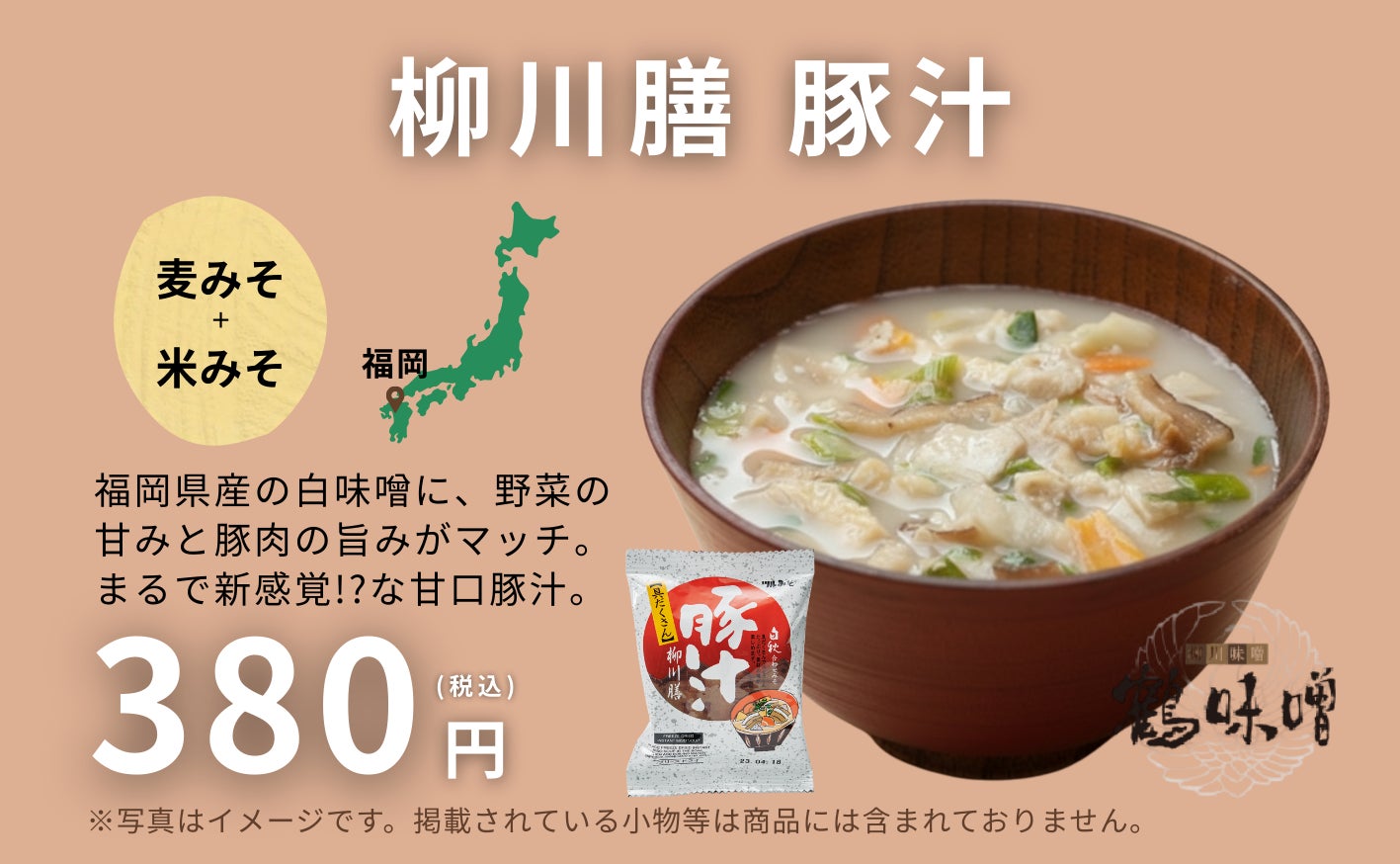 地域ごとの風土が生んだ個性豊かな味噌を使用し、素材の旨みを閉じ込めたフリーズドライの豚汁です。お湯を注ぐだけで、本格的な蔵元の味わいをお楽しみいただけます。