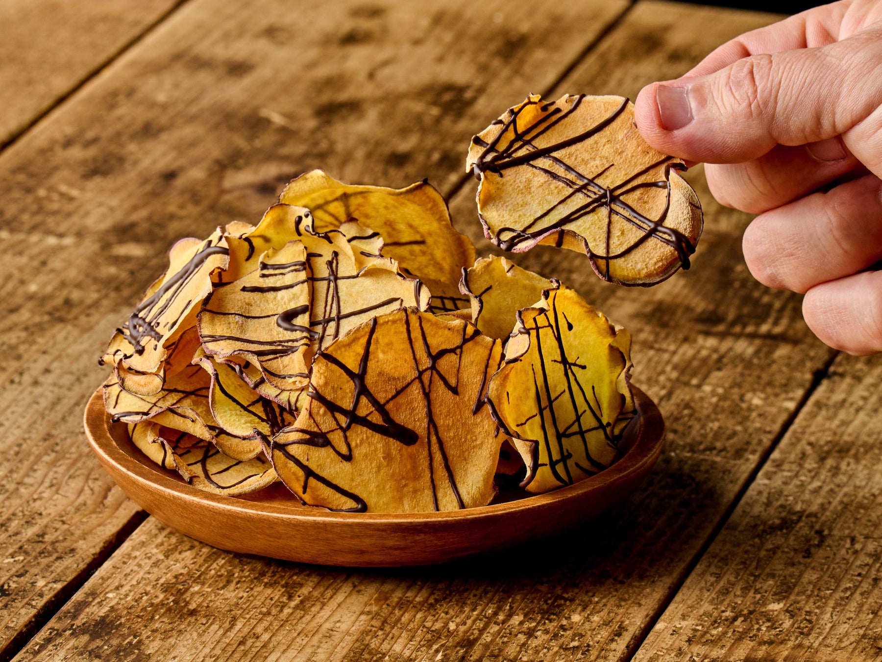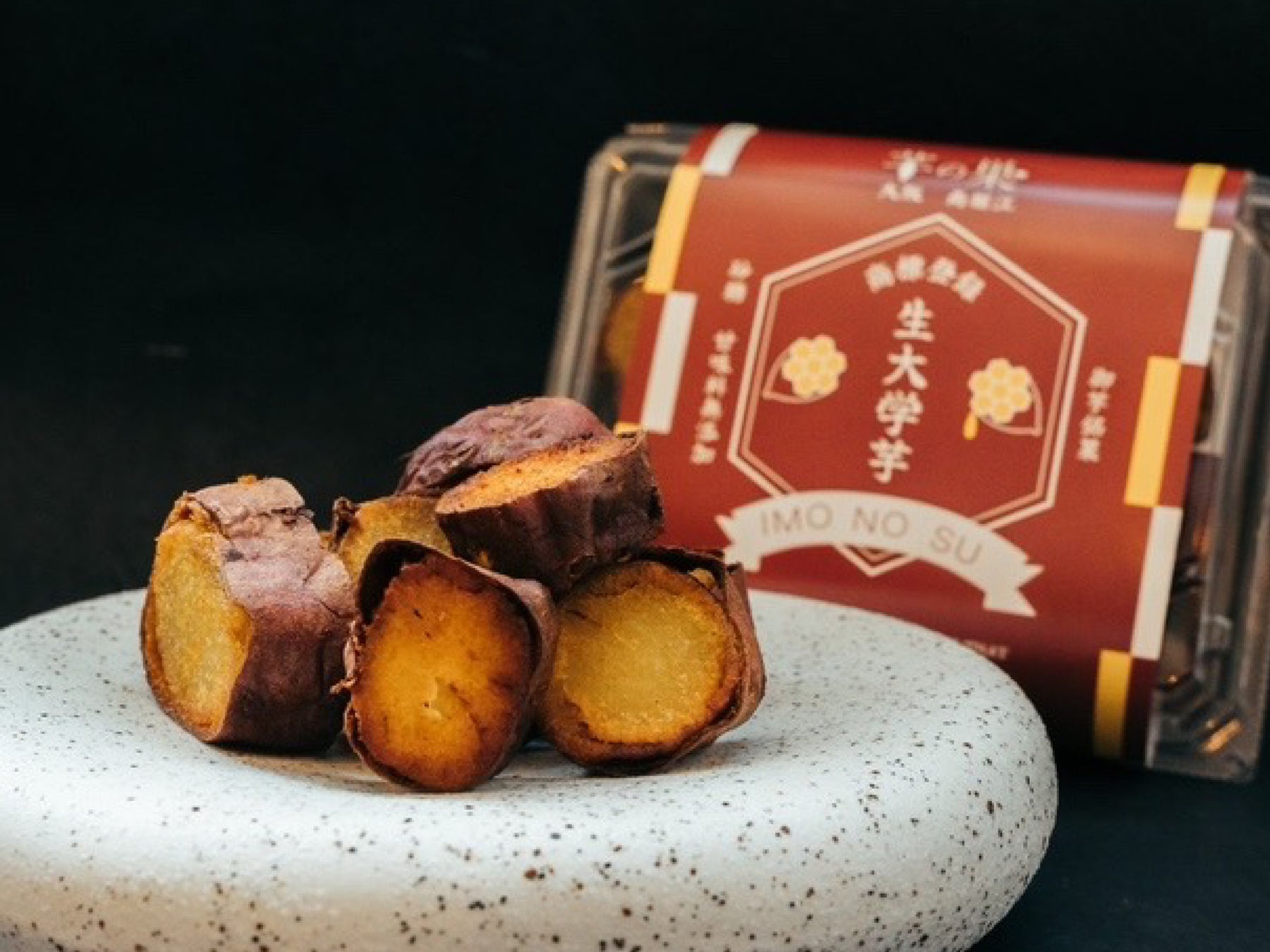 焼き芋スイーツの可能性を追求し、目で見ても舌で味わっても五感で楽しめる“焼き芋アミューズメント”がコンセプト。伝統的な焼き芋の枠を超え、斬新なスイーツを展開しています。「ショコラぶし」は、新ジャンルのローストチップスを目指した商品。独自技術で焼き上げた「紅あずま」にチョコレートと粗塩をトッピングし、パリッパリの新食感に仕上げました。