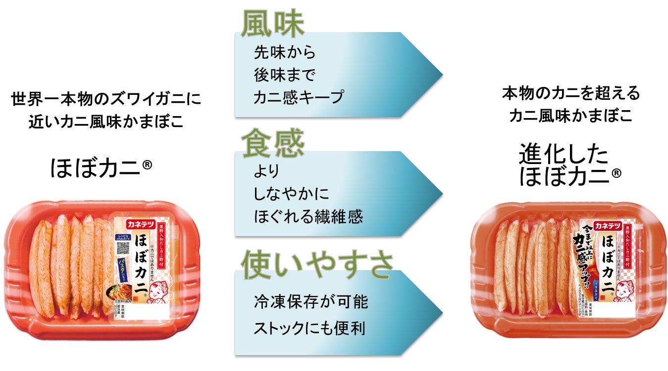 2026年3月に創業100周年を迎えるカネテツデリカフーズ株式会社(本社:兵庫県神戸市 代表取締役社長:村上 寛)は、発売以来初となる「ほぼカニ®」の大幅リニューアルを行い、2026年2月21日(土)より発売いたします。
