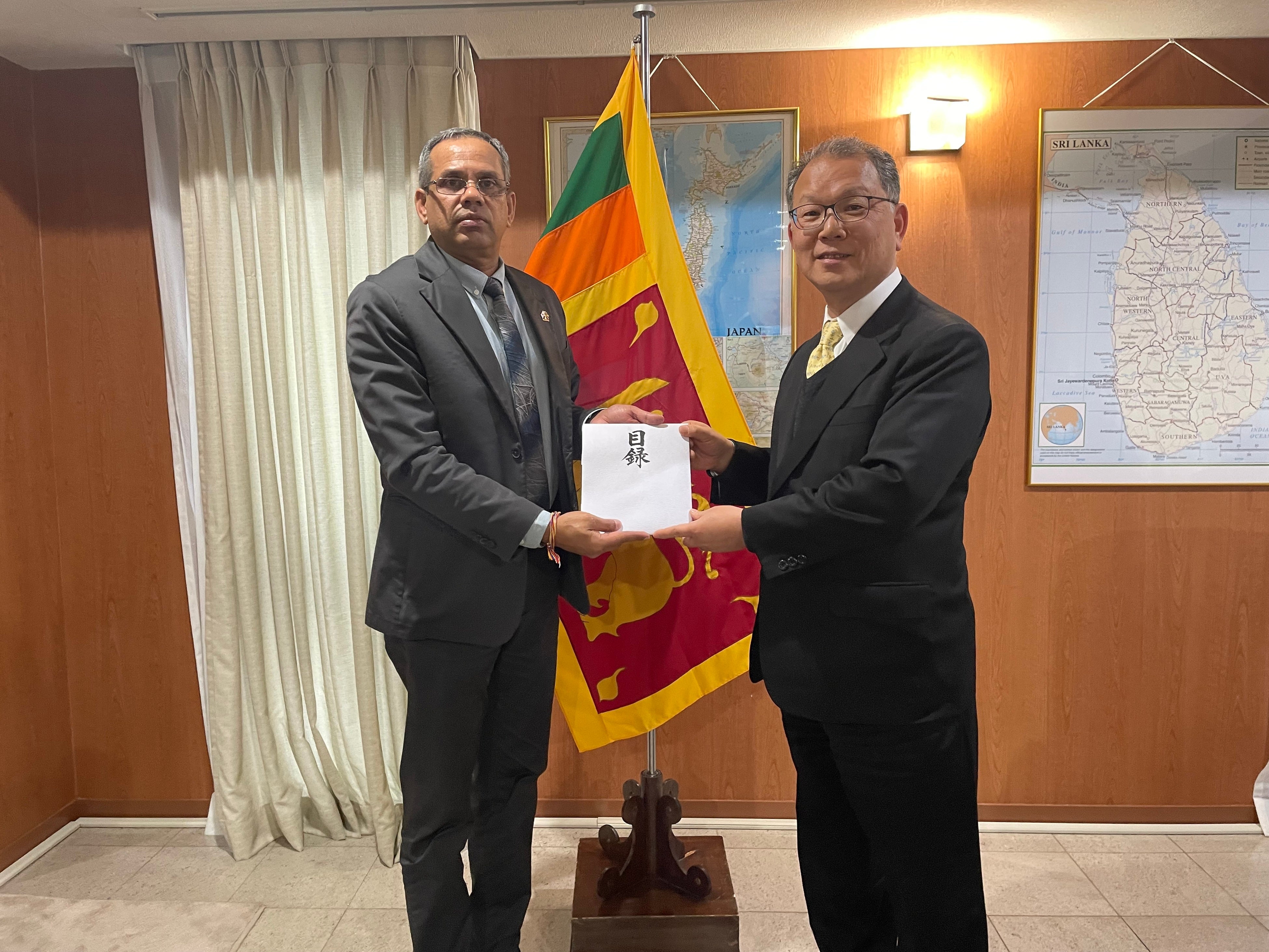 また、駐日スリランカ特命全権大使 ピヴィトゥル・ジャナック・クマーラシンハ様からは「今回の災害により、鉄道、インフラ、学校、中小企業などが甚大な被害を受け、被害総額は巨額に達しています。日本からは地理的に離れているにもかかわらず、真っ先に医師団の派遣など迅速な支援をいただき、兄弟愛のような深い絆を感じています。」として、日本の支援に対する感謝の言葉をいただきました。