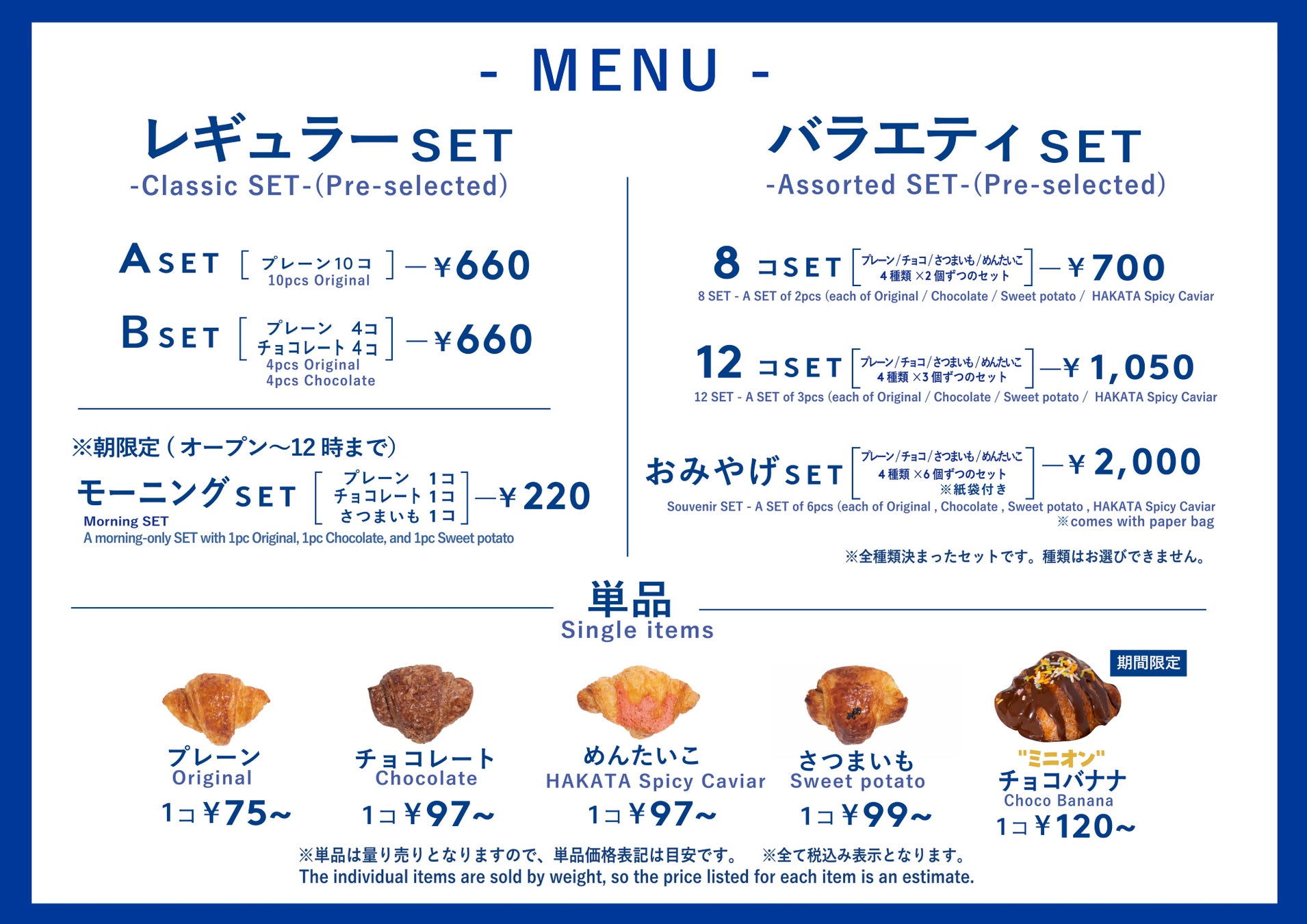 この度、商品メニューとしては、「プレーン」の他、ミニヨンの代表商品となる「チョコレート」や、九州の名物、明太子のペーストを使用した「めんたいこ」、大人気キャラクター”ミニオン”とコラボした「チョコバナナ」を展開します。