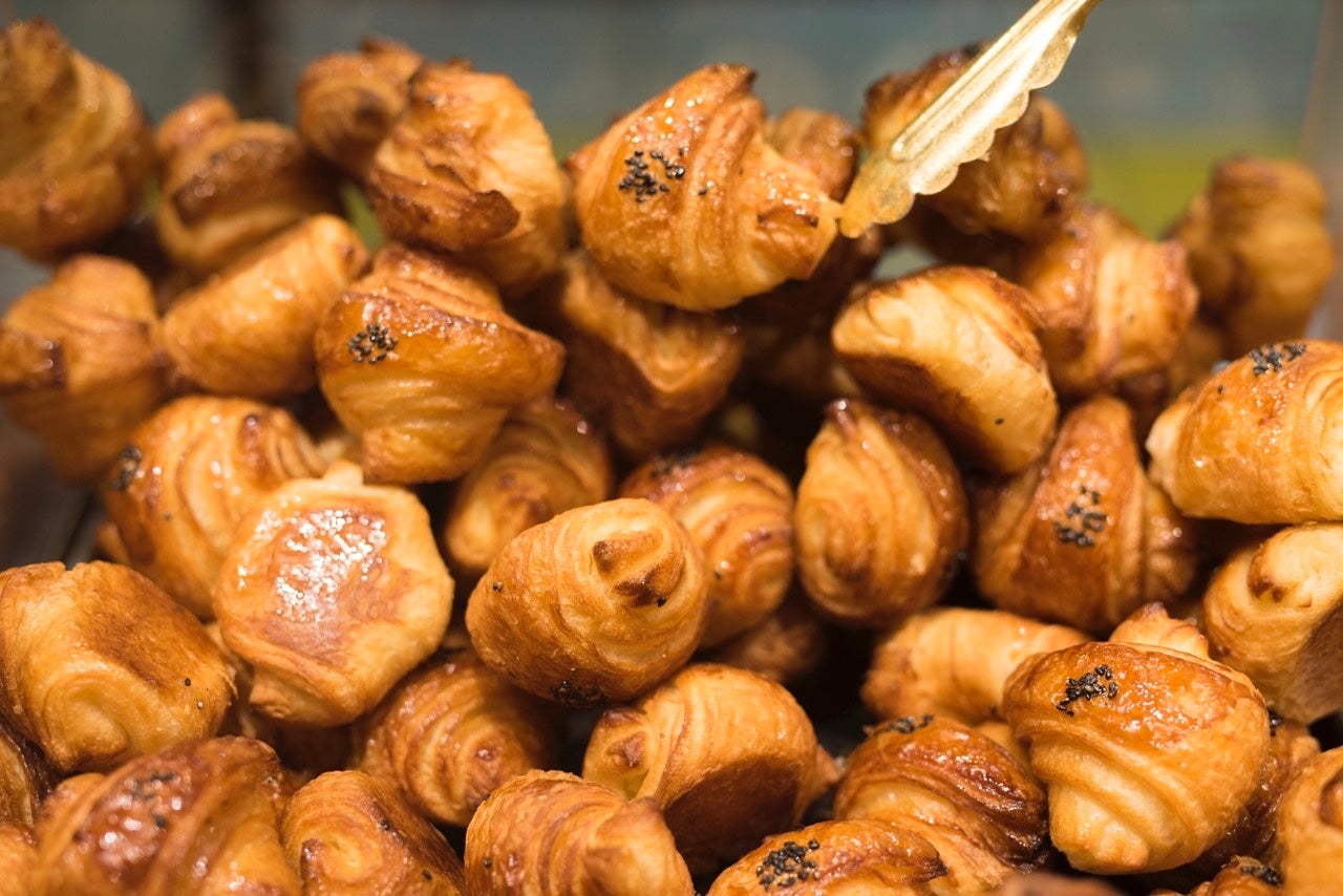 ミニヨンのミニクロワッサンは、食感に徹底的にこだわり、 機械では再現できない食感を出すため、創業以来ずっと手作業で生地を折る “手折り製法” 作られています。そのため “外はサクッと、中はモチッと“2つの食感が味わえます。